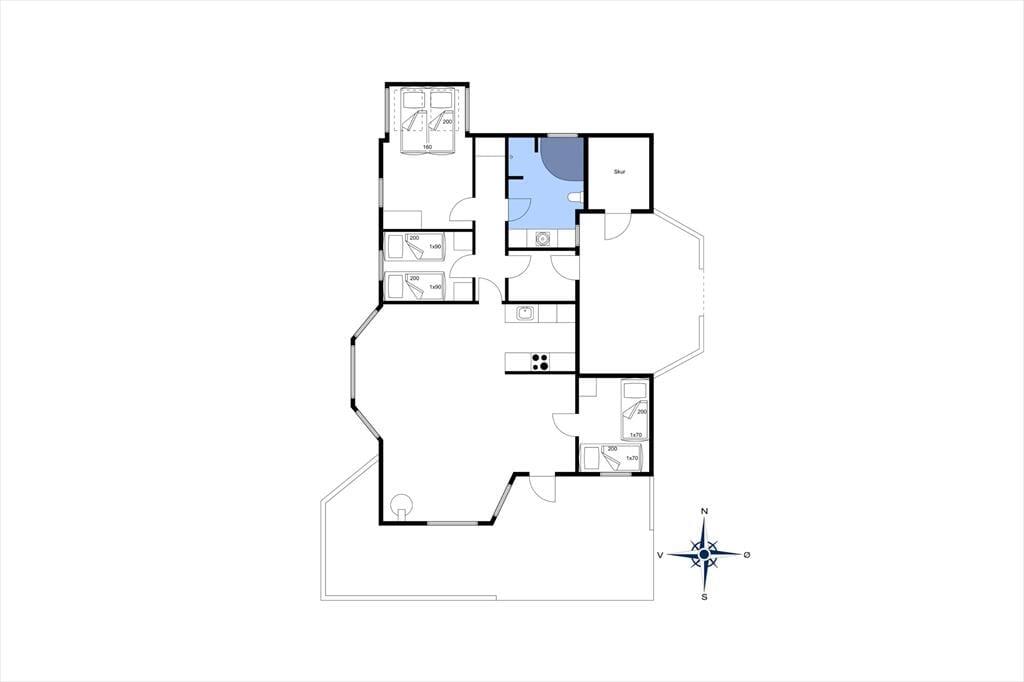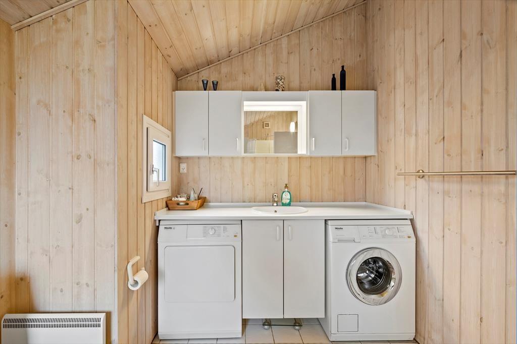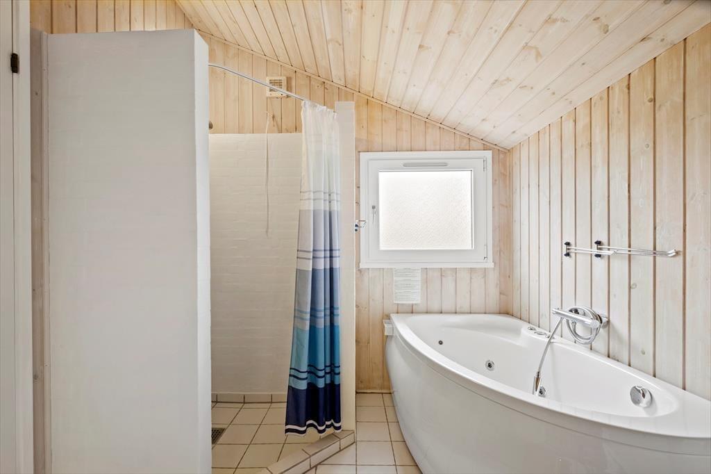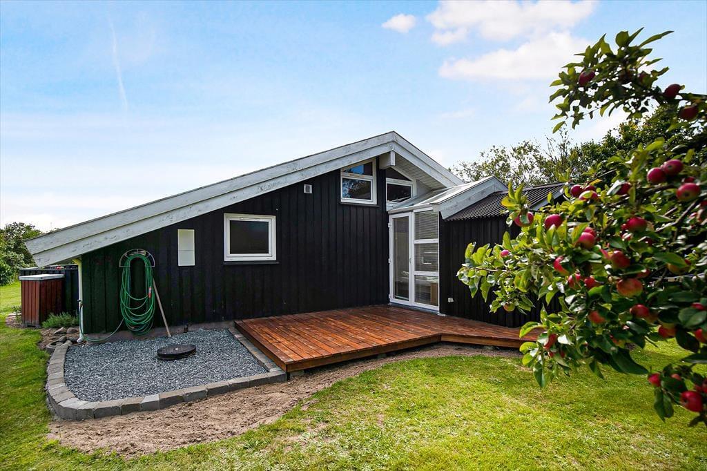 Sommerhuset har en fornuftig planløsning, der gør det muligt at samles op til seks personer inden døre. Hvis du er så heldig at skulle bo på det største af de tre soveværelser, er der god grund til at gå tidligt i seng, for dobbeltsengen er placeret under et ovenlysvindue, så du kan ligge og kigge på stjerner, inden du falder i søvn. I løbet af dagen er det skønt at slappe af i stuen – eventuelt med ild i brændeovnen og duften fra en nybagt kage i det åbne køkken – og du har også mulighed for at forkæle dig selv med et varmt spabad på det rummelige badeværelse.