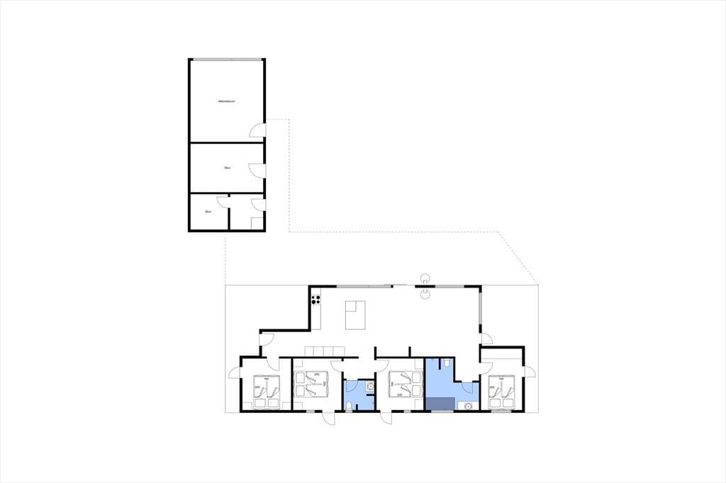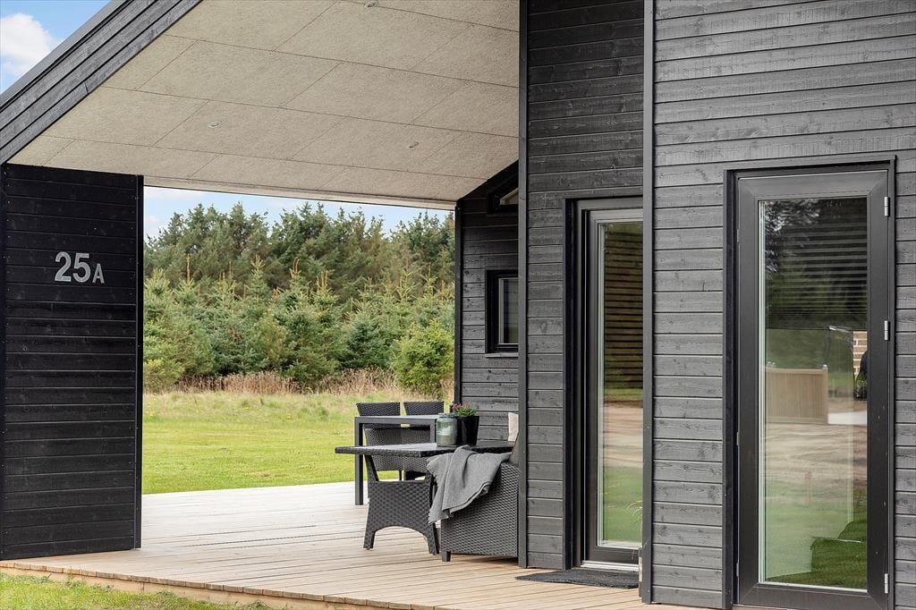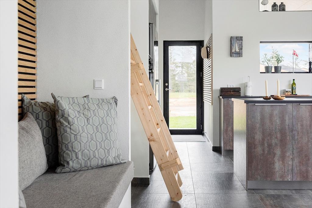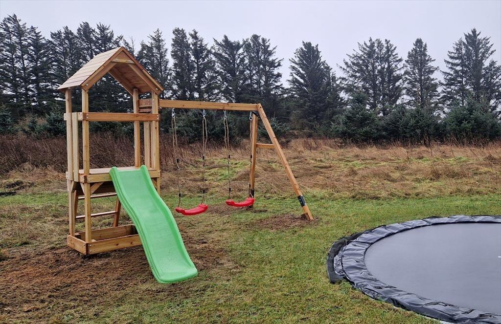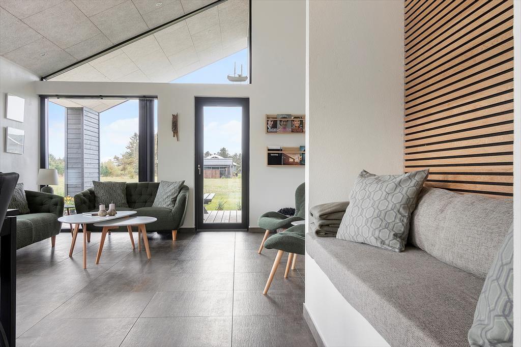 Huset er opført i 2023 og tager sig meget præsentabelt ud med sin stilsikre arkitektur, der sætter en elegant og eksklusiv ramme om ferieturen. Indenfor bliver du mødt af store, lyse rum, og der er en skøn atmosfære i hele huset – her er der virkelig kræset for detaljerne. I opholdsrummet er der loft til kip, som sammen med de store vinduespartier bidrager til oplevelsen af lys og luft. Det lækkert udstyrede køkken ligger i åben forbindelse med opholdsmiljøet, hvor de fælles måltider kan serveres ved langbordet. Der er også brændeovn og sofahjørne til indendørs hyggestunder efter aftensmaden. Huset indeholder derudover et aktivitetsrum, hvis du vil dyste med de andre i både pool og bordtennis. Endelig skal det nævnes, at huset har fire soveværelser og to badeværelser. Bemærk desuden, at der er luft til vand-varmepumpe, og at huset er billigt i forbrug.