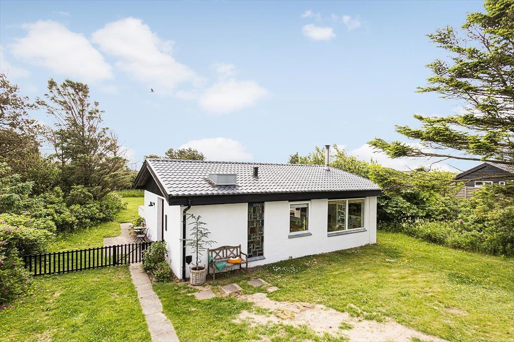 Grunden er dejligt stor med sine 1203 m2, og særligt den lukkede baghave kan hurtigt blive dit foretrukne sted at være, når der er sommerstemning i luften. Her kan både børn og hunde boltre sig på græsplænen, og hvis du selv har lyst til at deltage i legen, gælder det bare om at komme op af havestolen. Træterrassen er sydvendt, og med duften fra blomsterkasserne og udsigt til grundens hybenbuske er idyllen helt i top, når du slænger dig på en solseng eller dækker op til frokost i parasollens skygge. Om aftenen er der mulighed for at grille – hvis du ikke smutter ned i Lønstrup by for at spise på café eller restaurant.