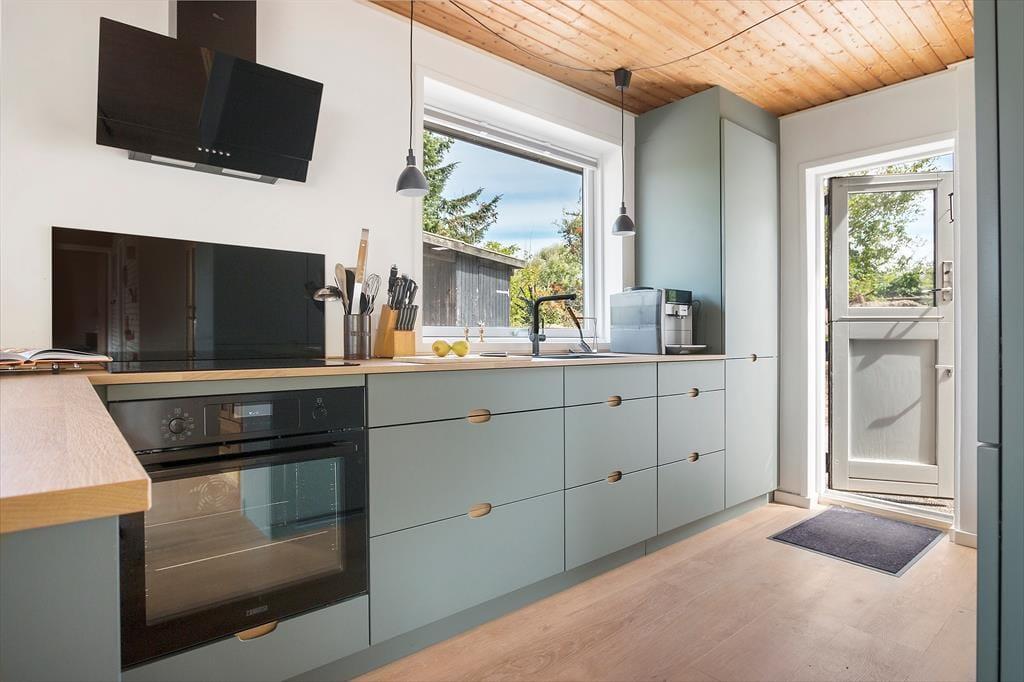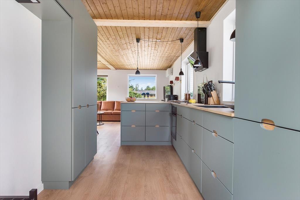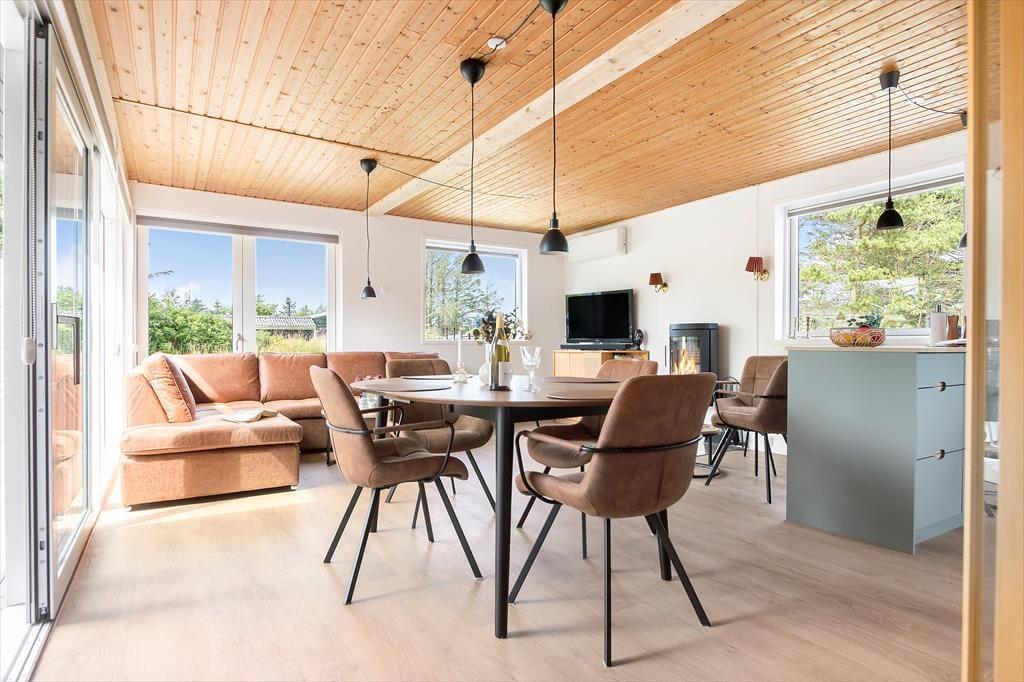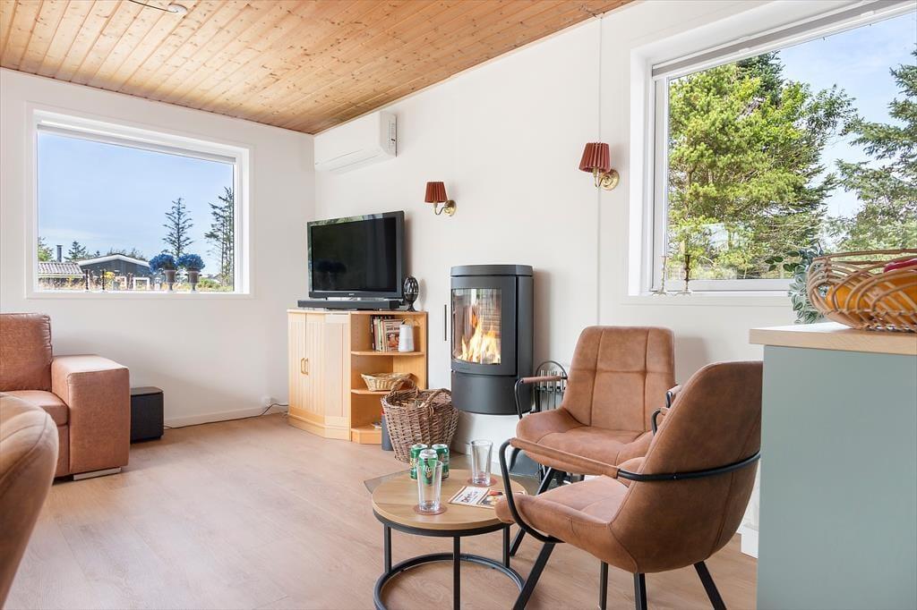 Sommerhus i Lønstrup Strand og By, Nordjylland, med plads til 6 voksne og 1 husdyr. Der er en hyggelig indretning med bl.a. brændeovn, og du finder desuden vaskemaskine, opvaskemaskine og tørretumbler i boligen.