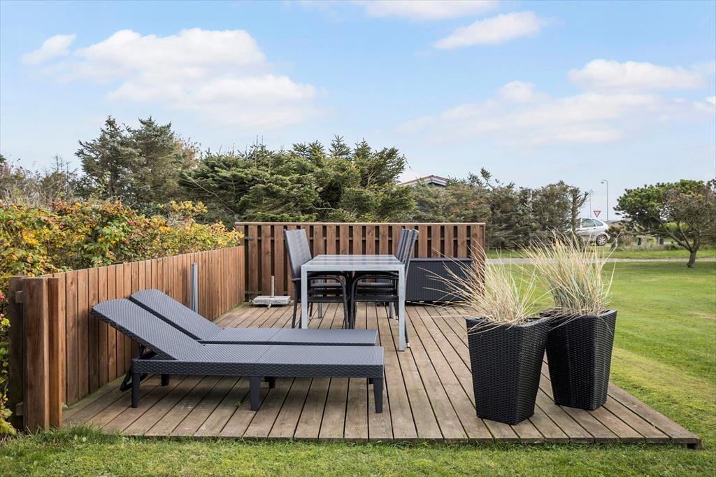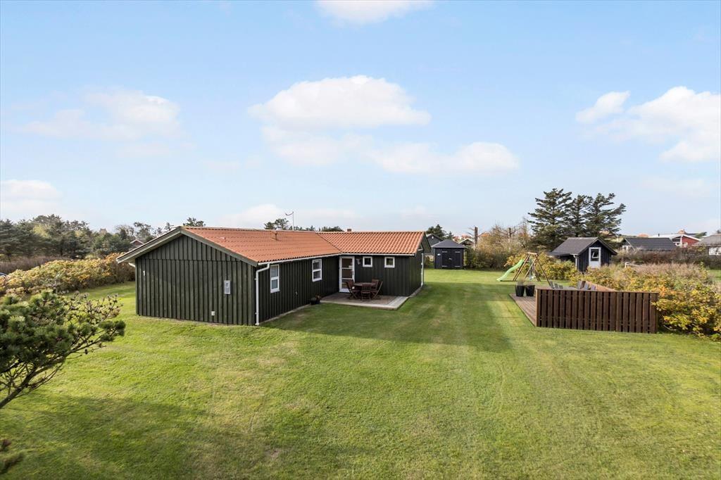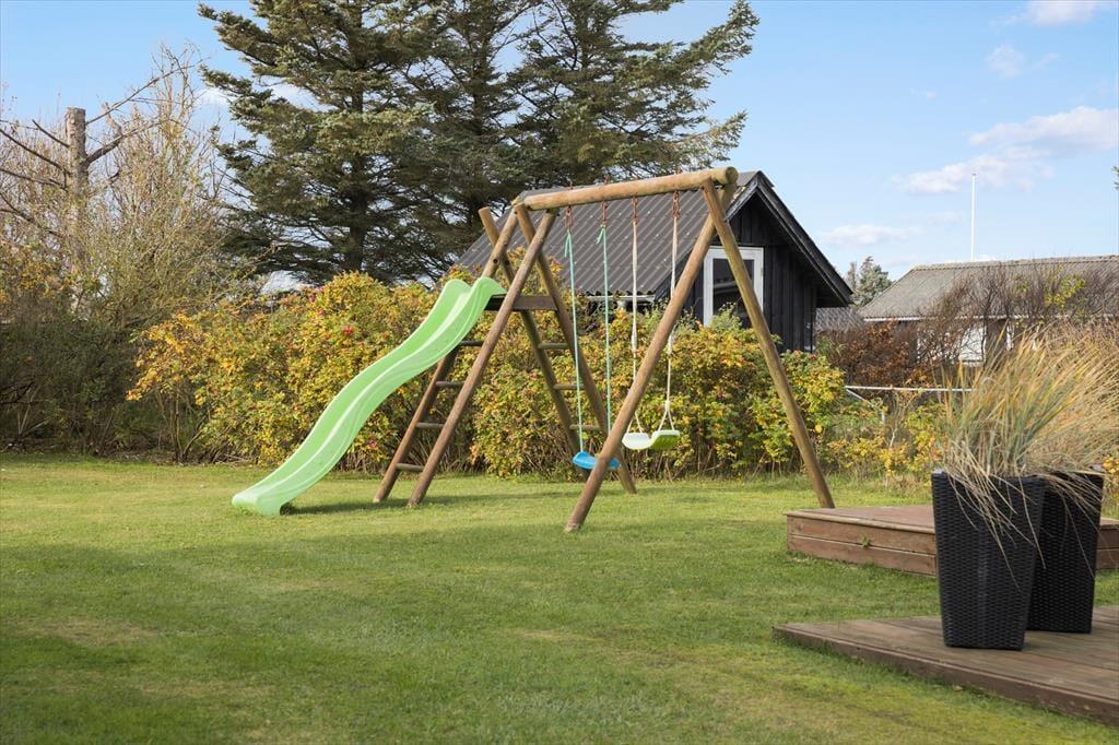 Sommerhuset byder på en stor have, hvor både børn og voksne kan finde glæde. Gyngestativet er et perfekt sted for børnene at lege, mens du slapper af på den rummelige terrasse, som indbyder til grillaftener og lange stunder i solen. Terrassen er ideel til både morgenkaffe og afslapning om aftenen, når den varme sommerbrise fylder luften. Den store have giver rig mulighed for at spille spil, nyde en picnic eller tage en stille stund i solen. Og når du er klar til at tage på opdagelse, ligger den smukke Lønstrup Strand kun en kort gåtur væk, hvor du kan mærke sandet mellem tæerne og høre bølgernes brusen.