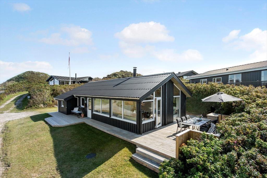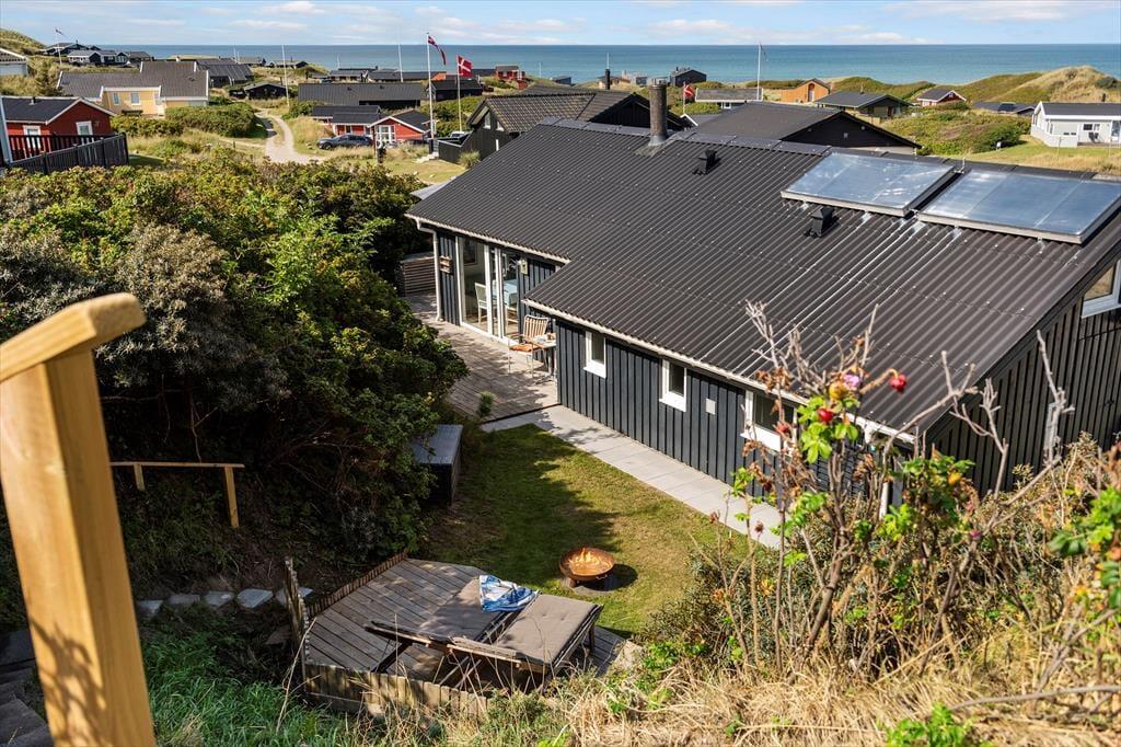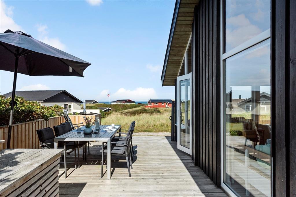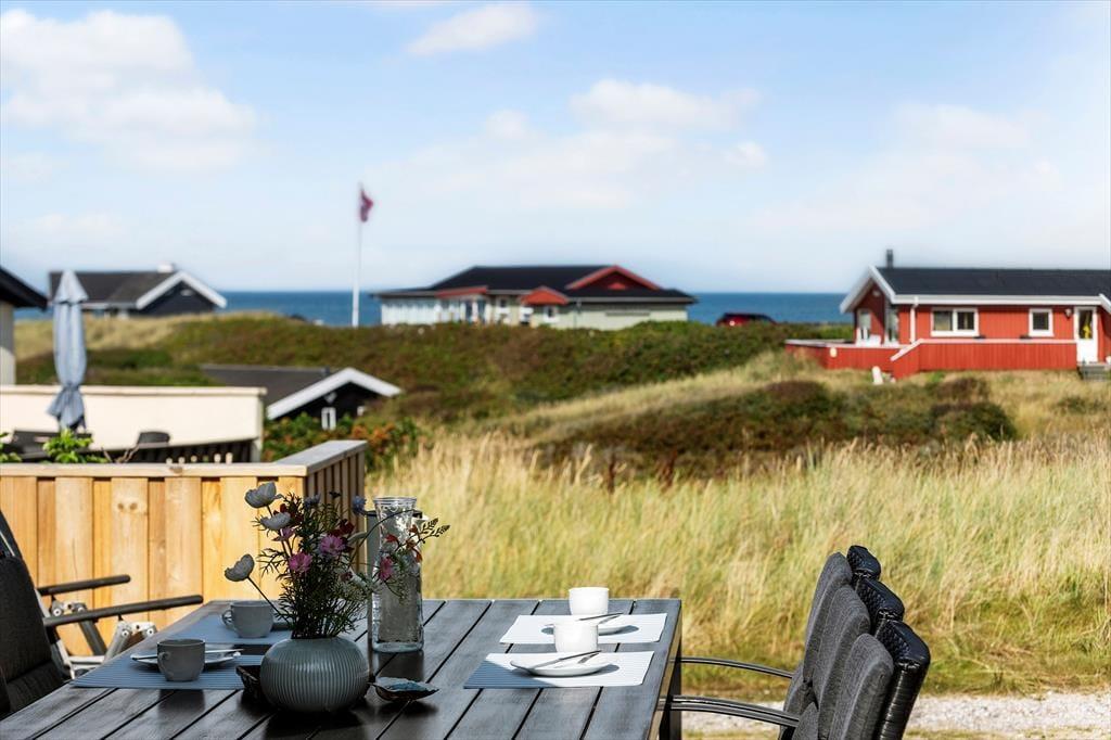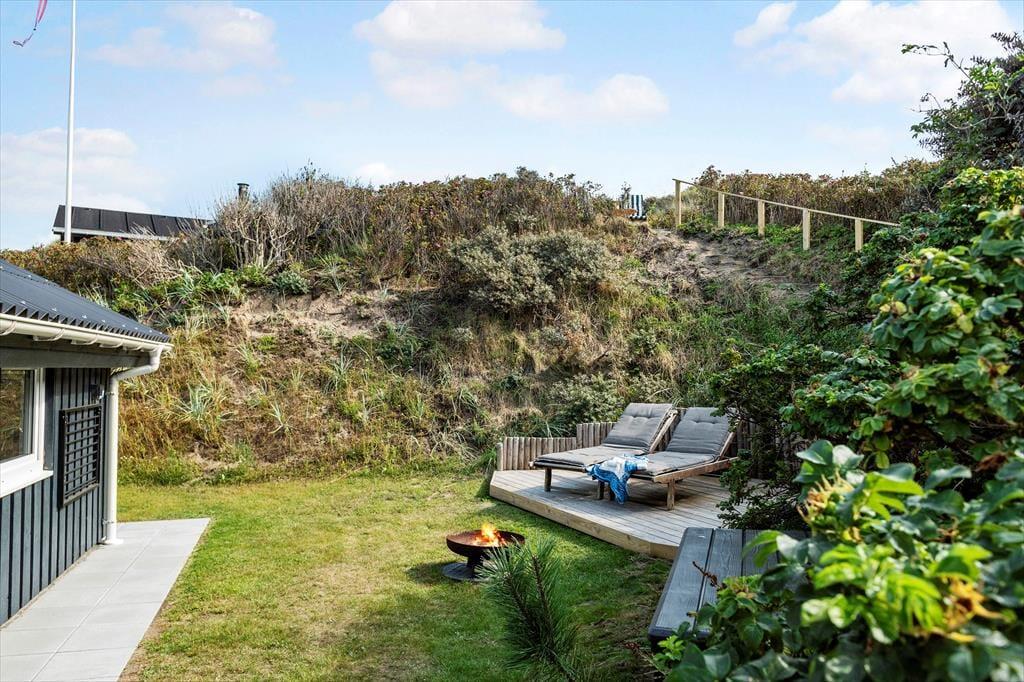 Udelivet bliver en sand fornøjelse på de dejlige terrassearealer, der omgiver sommerhuset. Her kan du starte dagen med en kop kaffe i den friske havluft eller nyde et glas vin, mens solen går ned bag klitterne. Den vestvendte terrasse giver dig en flot havudsigt, så du kan lade blikket vandre ud over horisonten, mens du slapper af i havemøblerne. Grillen står klar til hyggelige middage under åben himmel, og haven indbyder til leg og afslapning for både børn og voksne.