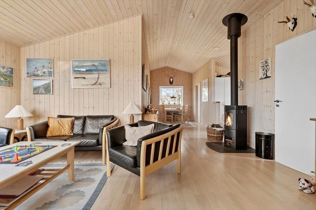 Der er noget særligt rart over at træde indenfor i et sommerhus, hvor lyset strømmer ind, og hyggen mærkes med det samme – og netop sådan en følelse møder dig her på Krattet 9. Indretningen er både lys og venlig, og det indbydende opholdsrum bliver hurtigt familiens samlingspunkt. Når solen skinner udenfor, føles det næsten, som om den følger med ind gennem de store vinduer, og på kølige aftener kan I trække jer sammen i sofaen med et brætspil, en god film eller en stille stund med en bog. Den åbne planløsning mellem stue og køkken gør det let at være sammen på kryds og tværs, og du kan nemt forestille dig snakken flyde, mens der bliver lavet mad og grinet om dagens oplevelser. Huset er indrettet, så det føles både hjemligt og ferieagtigt på den helt rigtige måde – det er nemt at finde sig til rette.