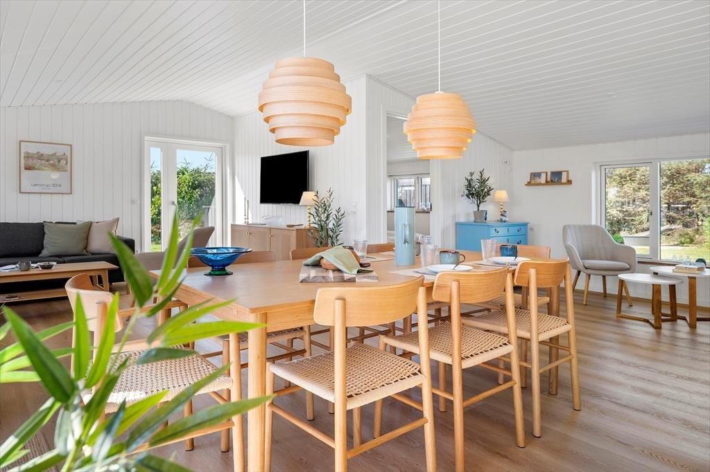 Sommerhuset er i 2025 blevet nænsomt renoveret, og resultatet er en stilren, lys og hyggelig indretning, hvor der ikke mangler noget. De åbne opholdsrum gør det nemt at samles om ferien – uanset om det er til madlavning, brætspil eller en rolig stund med en bog i sofaen. Stemningen er varm og indbydende, og du mærker hurtigt, at her er lagt vægt på både detaljer og helhed. De to store badeværelser giver ekstra komfort, og sammen med de gode soveværelser bliver rammerne perfekte til afslapning og nærvær. Det er et sommerhus, hvor man straks føler sig hjemme, og hvor hver eneste krog indbyder til ro og ferieglæde.