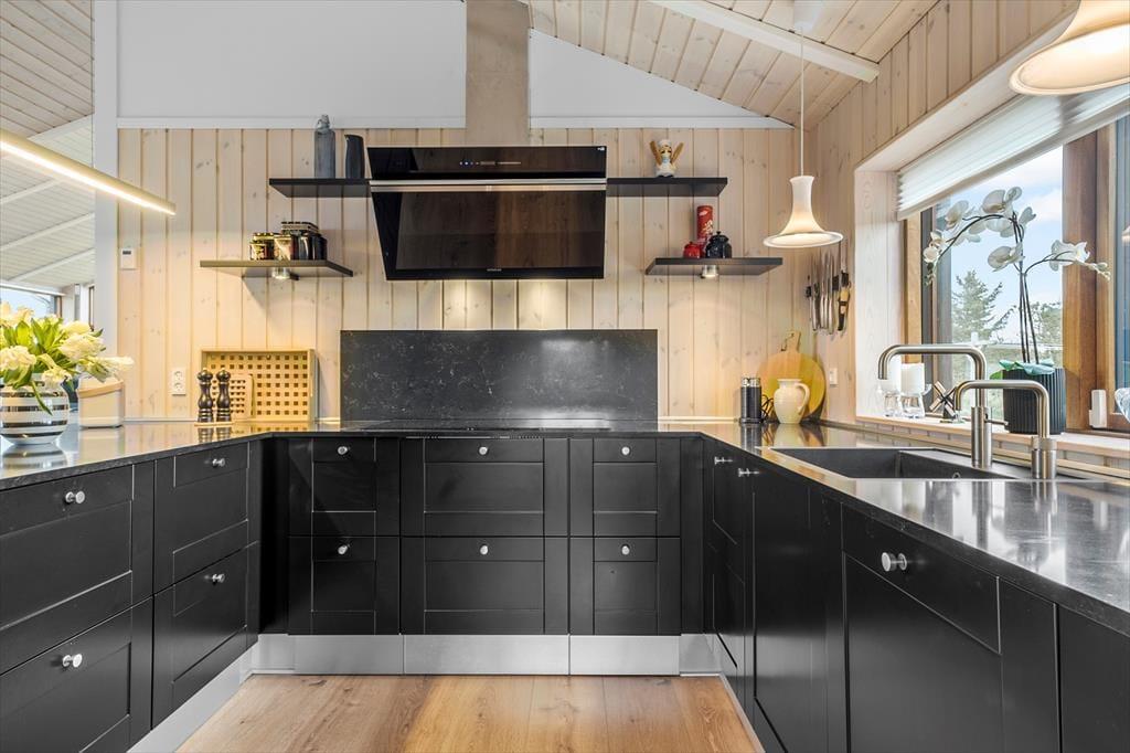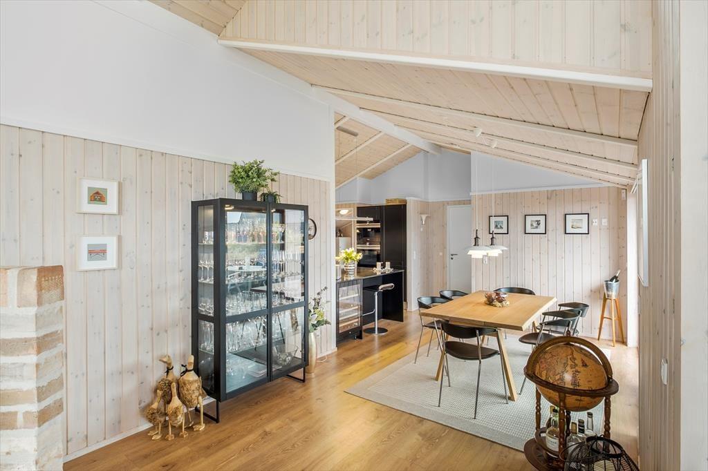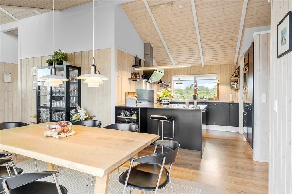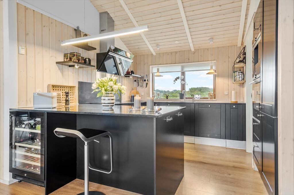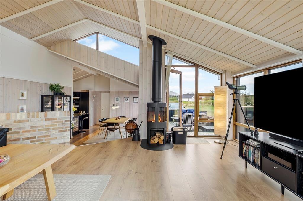 Indenfor møder du en stemning, der er både moderne og afslappet. Den gennemførte indretning og det elegante materialevalg er med til at skabe en rolig og lys atmosfære, hvor det er nemt at føle sig hjemme – uanset årstid. Hjertet i huset er det rummelige opholdsrum med et stilfuldt køkken i åben forbindelse med stuen. Her er der rigelig plads til hyggelige fællesstunder, uanset om det er en regnvejrsdag med brætspil og varm kakao, eller en sommermorgen med friskbagte rundstykker og udsigt til havet. Det store lysindfald og den åbne planløsning gør det let at være sammen – samtidig med at du aldrig er langt fra det storslåede vue ud over landskabet. De komfortable sovepladser sikrer, at alle får en god nattesøvn efter dagens oplevelser, og det hele er smagfuldt indrettet med tanke på både æstetik og funktion.