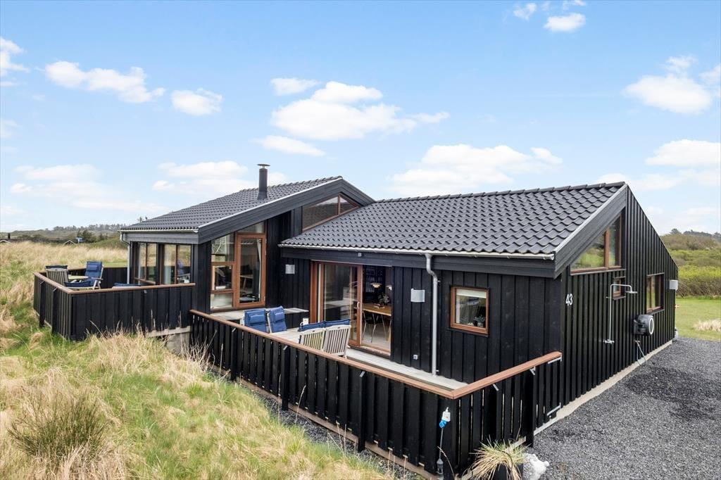 Forestil dig at vågne op til synet af Vesterhavet og lyden af vinden i klitterne – præcis sådan starter dagen i dette dejlige sommerhus på Klitbakkevej 43 i Lønstrup. Her får du moderne komfort og æstetisk indretning i en harmonisk kombination, og det hele er omgivet af det rå og betagende landskab, som området er så kendt for. Det højtbeliggende fritidshus er et fredeligt fristed for dig, der gerne vil koble helt fra, og samtidig være tæt på både byen og stranden.
