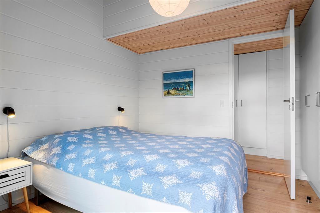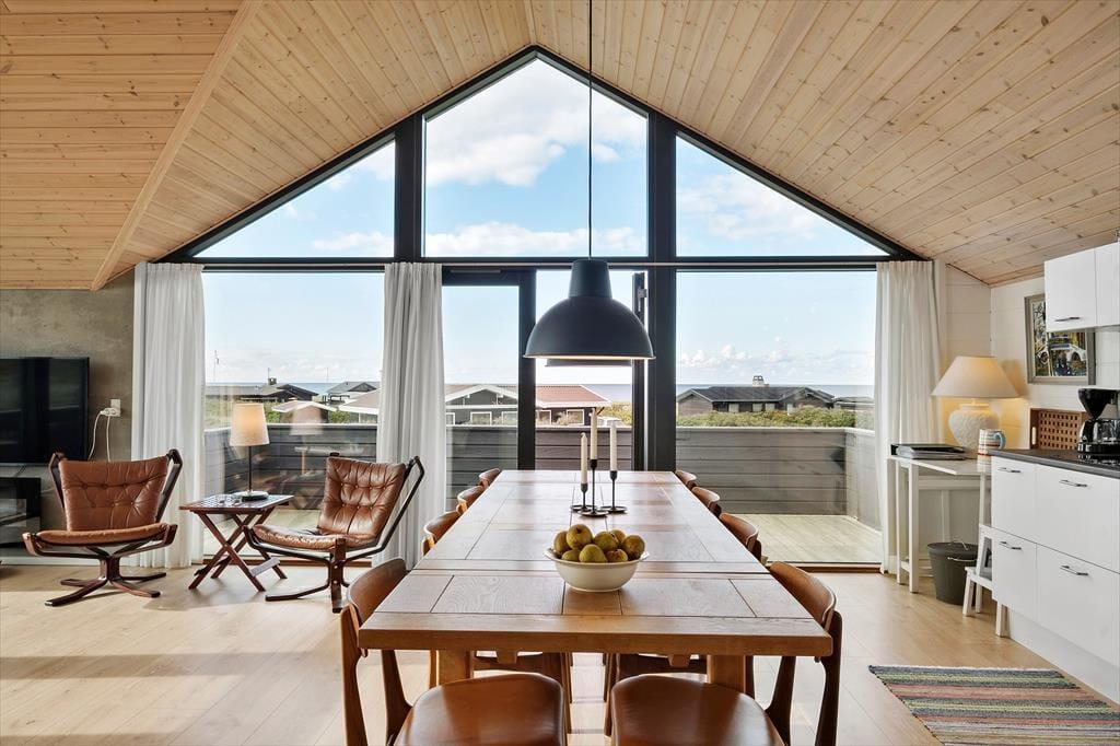 Inden døre bliver du mødt af en behagelig og afslappet stemning, som straks får skuldrene til at sænke sig. De store vinduer inviterer både dagslyset og havudsigten helt ind i stuen, og det åbne opholdsrum er indrettet med sans for detaljerne. Her er bløde tekstiler, kvalitetsmøbler og et indretningstema, der balancerer det moderne med det hyggelige – perfekt til lange, afslappede feriedage. Køkkenet ligger i naturlig forlængelse af stuen, så samværet kan være i centrum, uanset om der laves mad, spilles spil eller blot slappes af i sofaen. De tre soveværelser er indrettet med dobbeltsenge og har en rolig atmosfære, hvor man kan trække sig tilbage og finde fred. Og for børn eller barnlige sjæle venter hemsen, hvor to ekstra madrasser gør det muligt at have en hyggelig hule med udsigt til stjernerne.