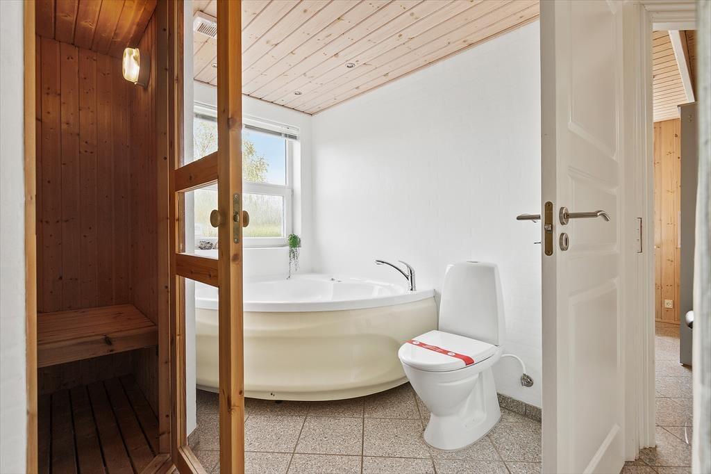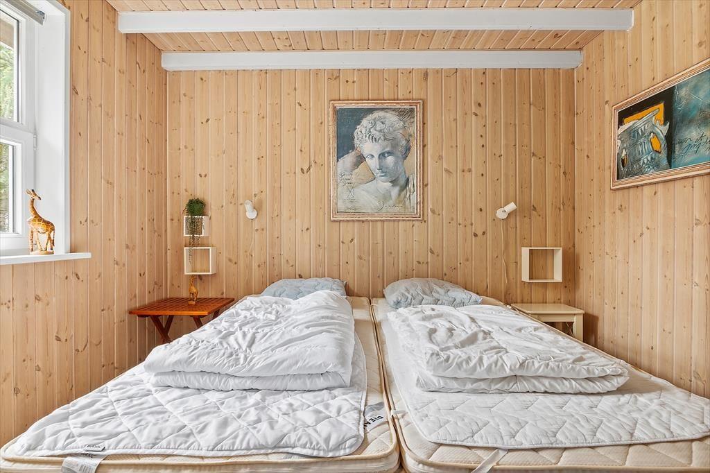 Overalt i dette sommerhus kan I fornemme ejernes ønske om at skabe nogle hyggelige og velfungerende rammer i høj kvalitet. Her er indrettet med flotte møbler, og året rundt kan I nyde det pragtfulde lysindfald fra de store vinduer. Det gennemgående klinkegulv samler hele huset på bedste vis, og med en god isolering og et oliefyr, kan I holde varmeudgiften nede på et rimeligt niveau. HeIt centralt i sommerhuset ligger det åbne opholdsrum med køkken; det er her I kan samles til fælles madlavning og hygge med brætspil eller en god film på tv’et, med ild i brændeovnen på de kølige dage. I sommerhuset er der tre soveværelser, og på de to hemse er yderligere to madrasser på hver, som er gode til en hyggestund eller en lille lur om eftermiddagen. På det store badeværelse kan I gå i spabad og få varmen i den tilhørende sauna; det er wellness uden at skulle have den store pung op af lommen. Aldeles gode faciliteter, dette sommerhus får vores bedste anbefalinger.