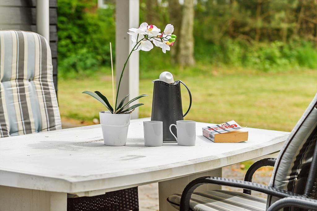 Sommerhuset ligger på en plan naturgrund, godt i læ fra træer og høje buske. Her er plads til at nyde sommerlivet for fulde drag. Mod syd ligger en stor og skøn terrasse, hvor I kan grille, spise og nyde solen og det forhåbentligt gode vejr. Der er en Spirii Type 2 lade-stander ved huset til el-bil (medbring eget kabel).