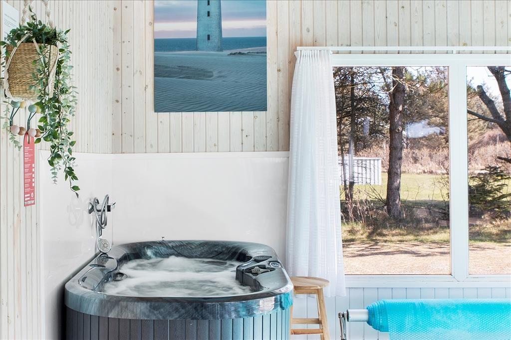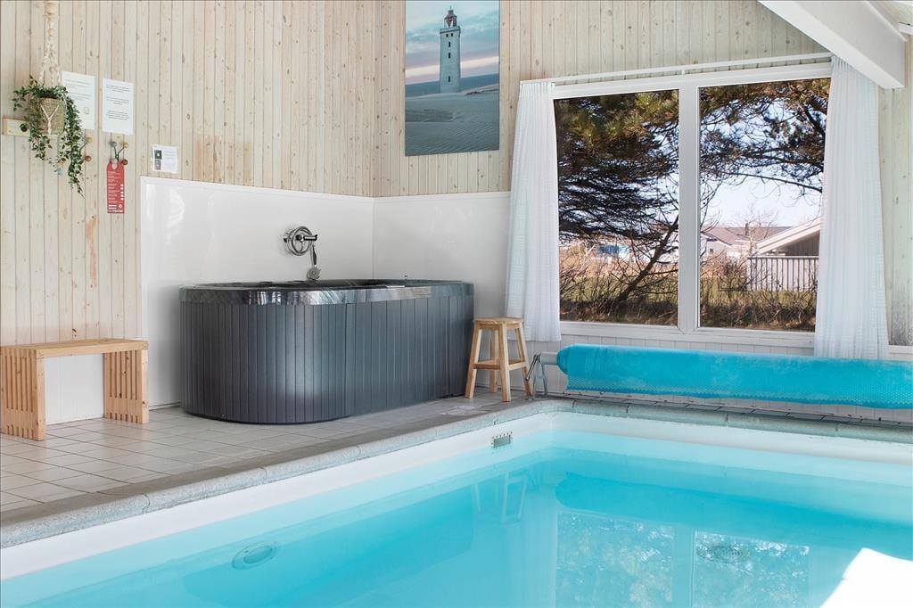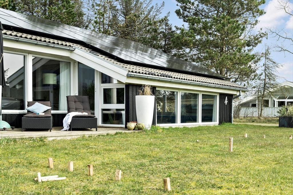 Er du på udkig efter et feriehus, der har både plads til leg og afslapning? Så er sommerhuset på Fladen Grund 4 i Lønstrup lige noget for dig. Her venter en smagfuld og hyggelig indretning, som giver den perfekte ramme om både familielivet og feriehyggen. Når du ikke kan få nok af stranden og den smukke natur, kan du tage et dyp i den private swimmingpool eller nyde en afslappende stund i spaen. Læg dertil beliggenheden, der giver nem adgang til både byen og de smukke omgivelser, og du har et sommerhus, der er både funktionelt og indbydende.