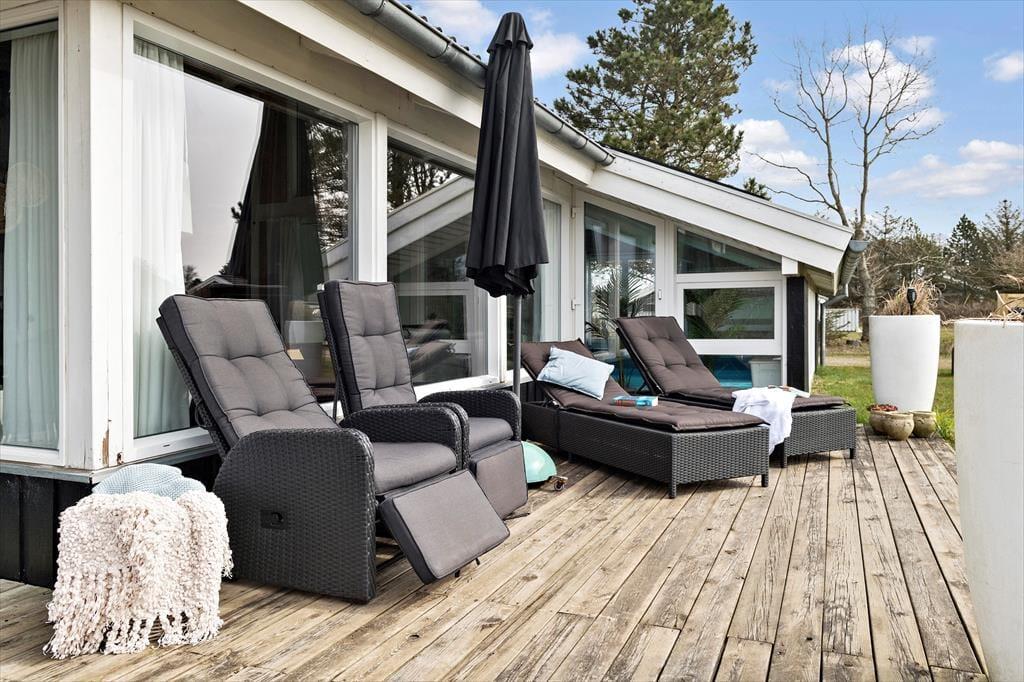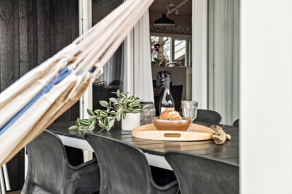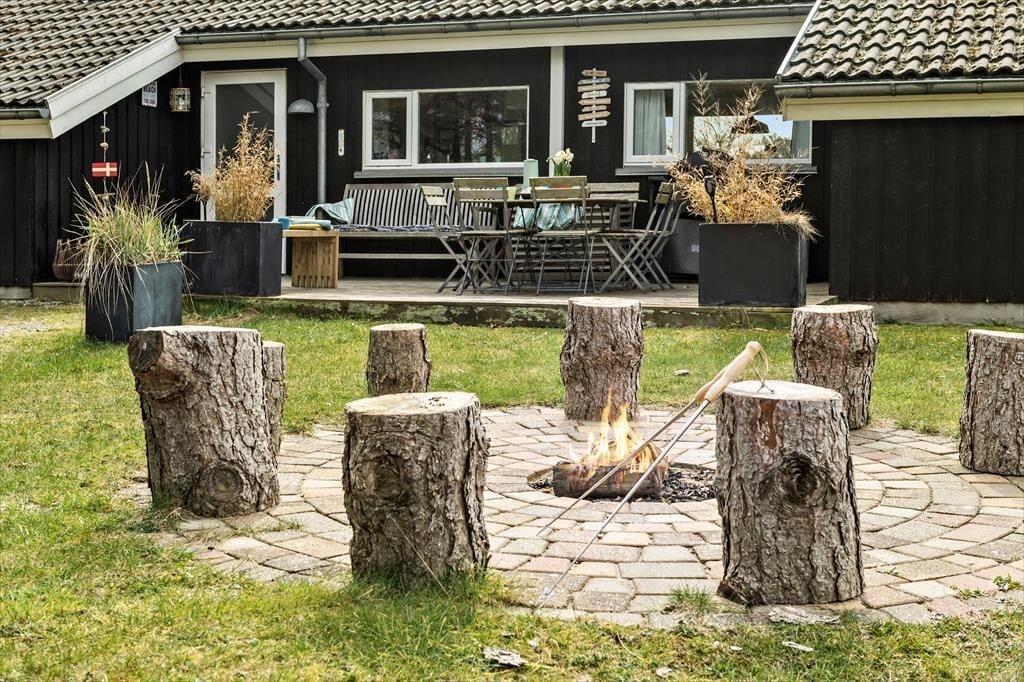 Udemiljøet omkring sommerhuset er noget helt særligt. Her er plads til leg, boldspil og afslapning på græsset, og den store have med bålplads indbyder til hyggelige aftener under åben himmel. Terrassen er den perfekte ramme til solrige dage, hvor du kan slappe af i loungemøblerne eller nyde et måltid ved udendørs spisebordet. Hele området er anlagt med omtanke, så både børn og voksne kan få den perfekte ferieoplevelse, uanset om det drejer sig om leg, afslapning eller kvalitetstid sammen. Uanset om du er til solbade, grillmiddage eller stjernekiggeri, er der altid en dejlig plads at være.