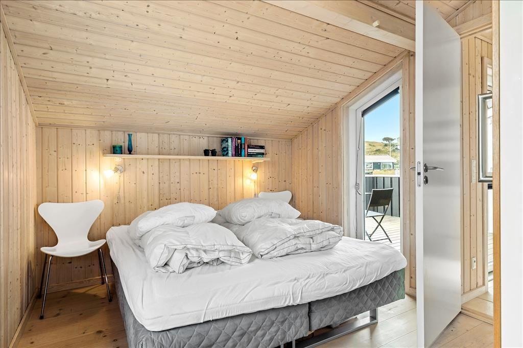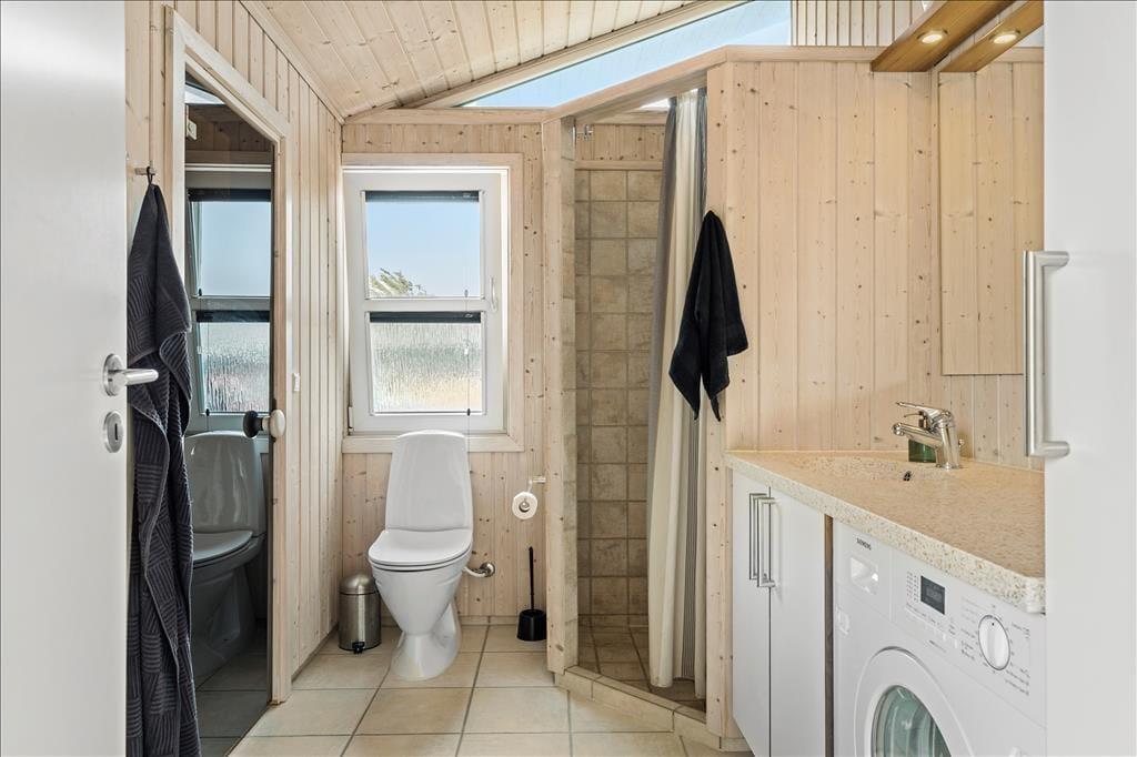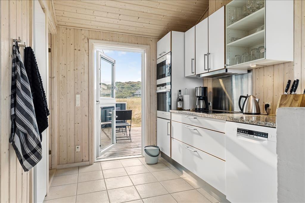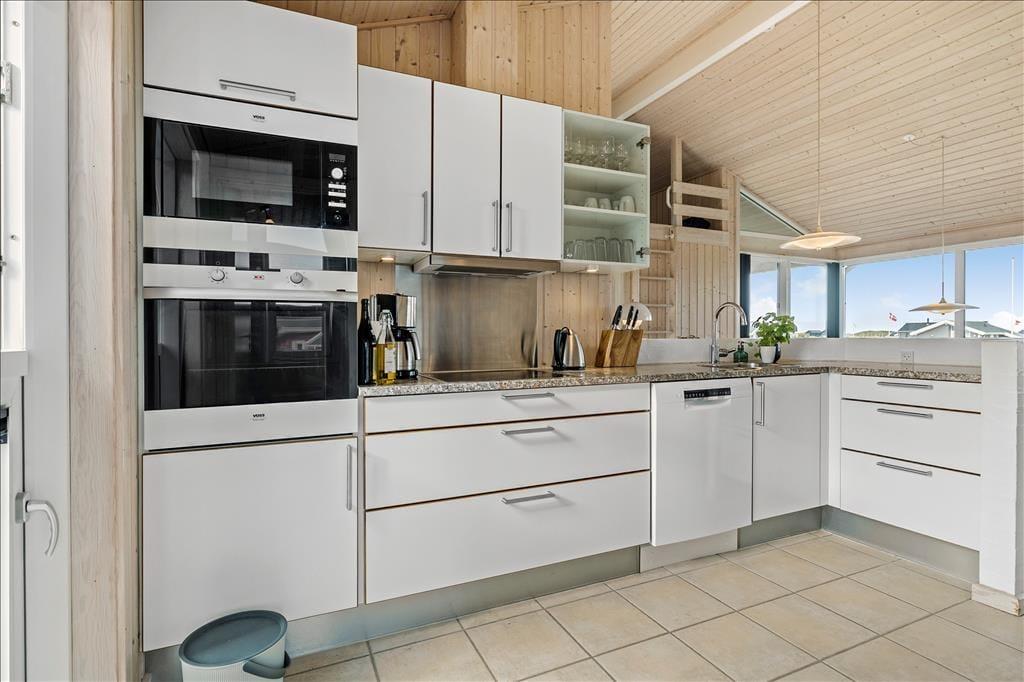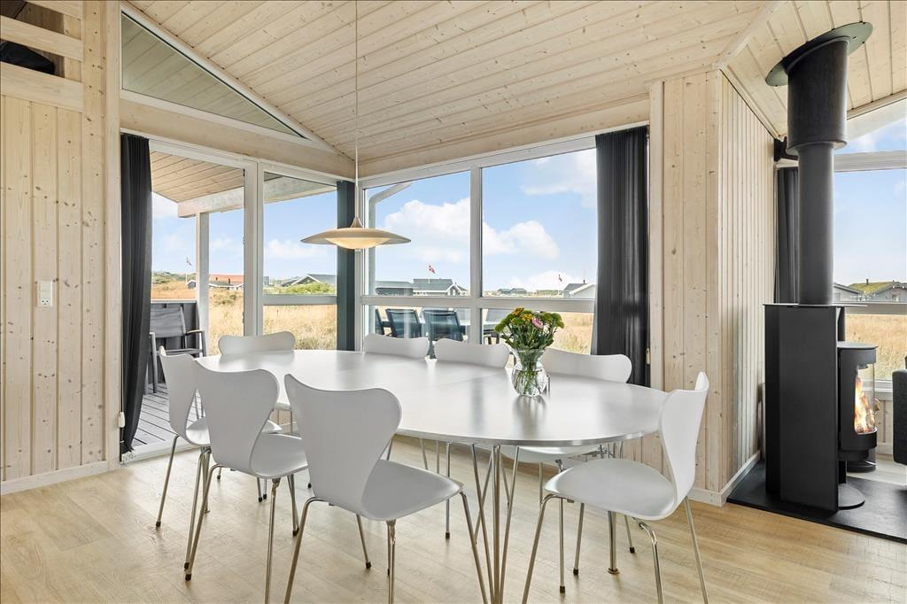 Velkommen indenfor i et moderne og veludstyret sommerhus. Her kan hele familien være sikker på at få en god, afslappende og minderig ferie i de bedste rammer. Med tre værelser, to hemse og to badeværelser er her plads nok til alle, og fra det åbne køkken har man direkte adgang til spisestuen og opholdsstuen med tv, brændeovn og udsigt til Vesterhavet. Sommerhuset er indrettet med pæne og klassiske møbler, velfungerende hårde hvidevarer og moderne teknisk udstyr som parabol og trådløst internet, så medbring gerne tablet og pc hjemmefra og få nem adgang til oplysninger og informationer om områdets mange muligheder. Har man mindre børn med på ferien, vil man sætte pris på, at der er mulighed for at vaske og tørre tøj og håndklæder, ligesom der i sommerhuset forefindes både stol og seng til de mindste.