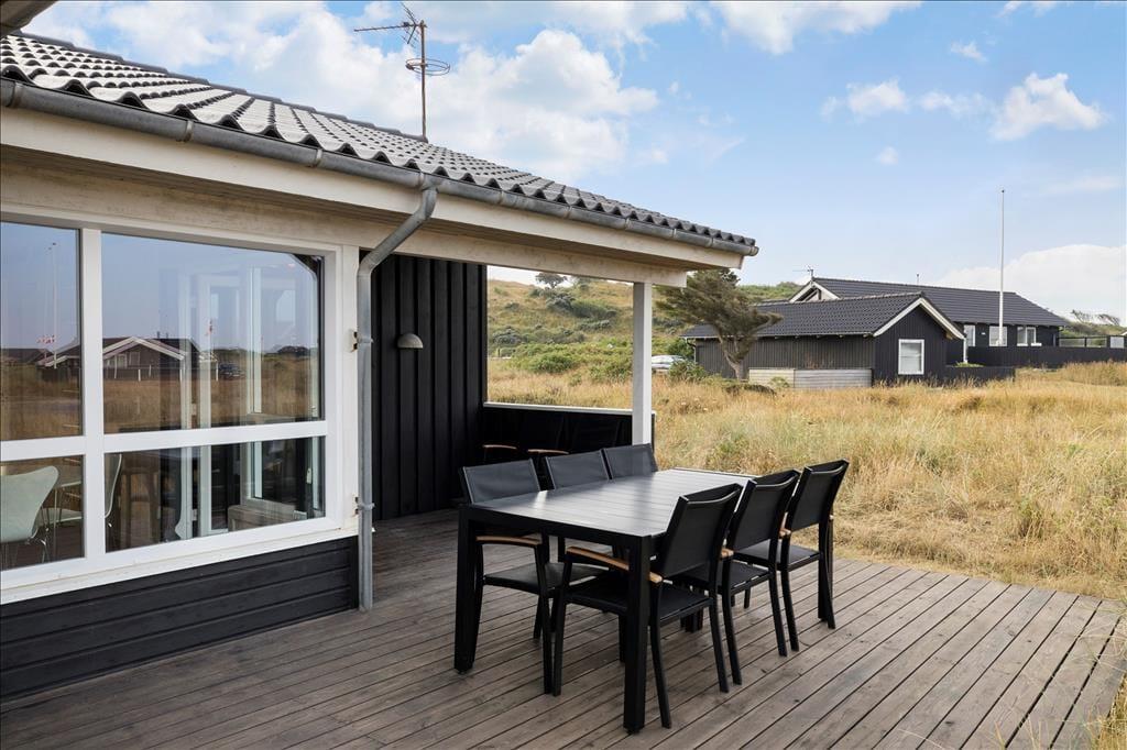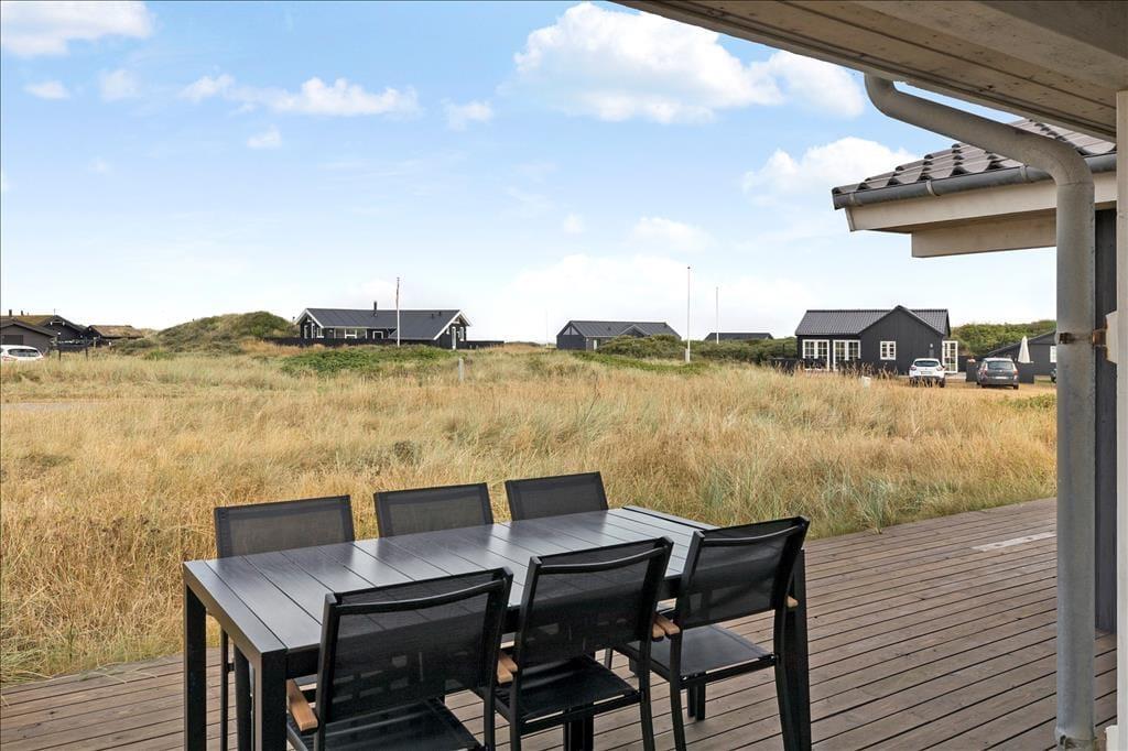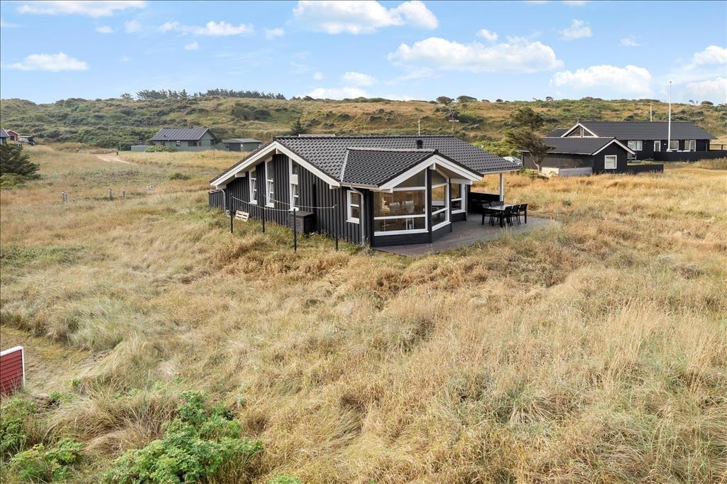 Sommerhuset ligger på en skøn og let kuperet naturgrund i indlandsklitterne, her er fred og ro, og her kan man nyde den smukke udsigt over landskabet. På morgenterrassen kan man nyde solen og dagens første kop kaffe, mens terrassen ved opholdsrummet indbyder til grillmåltider og aftenhygge.