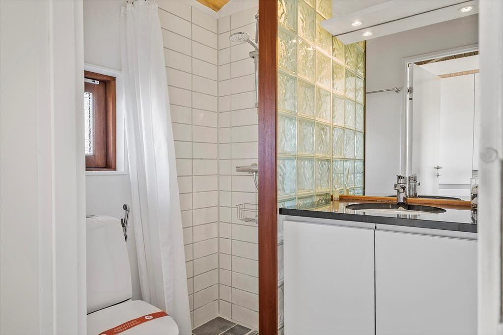 Dette sommerhus er beviset på, at småt å absolut kan være godt! I de 42m2 kan I være sikre på at få en god og afslappende ferie, uanset om I er en lille familie eller et par, som bare gerne vil være sig selv og være tæt på både stranden og byen. Til højre for entreen ligger to værelser med hhv. en dobbeltseng og en dobbeltseng med en køje over, og til venstre finder I badeværelset med bruser og gulvvarme. Om hjørnet er det åbne og sammenhængende køkken-opholdsrum med store vinduer og en dejlig udsigt over klitterne og kig til det blå Vesterhav. Takket være den gode udnyttelse og moderne indretning af alle m2 er her blevet plads til både vaskemaskine, tørretumbler og opvaskemaskine, så I ikke skal bruge længere tid end normalt på de praktiske gøremål. Endelig er sommerhuset tilkoblet fællesantenne, så I har adgang til mange danske, skandinaviske og tyske tv-programmer, og medbringer i pc eller tablet hjemmefra, har i fri adgang til det trådløse internet. Et skønt sommerhus med en god kombination af hygge, funktionalitet og afslappende stemning!