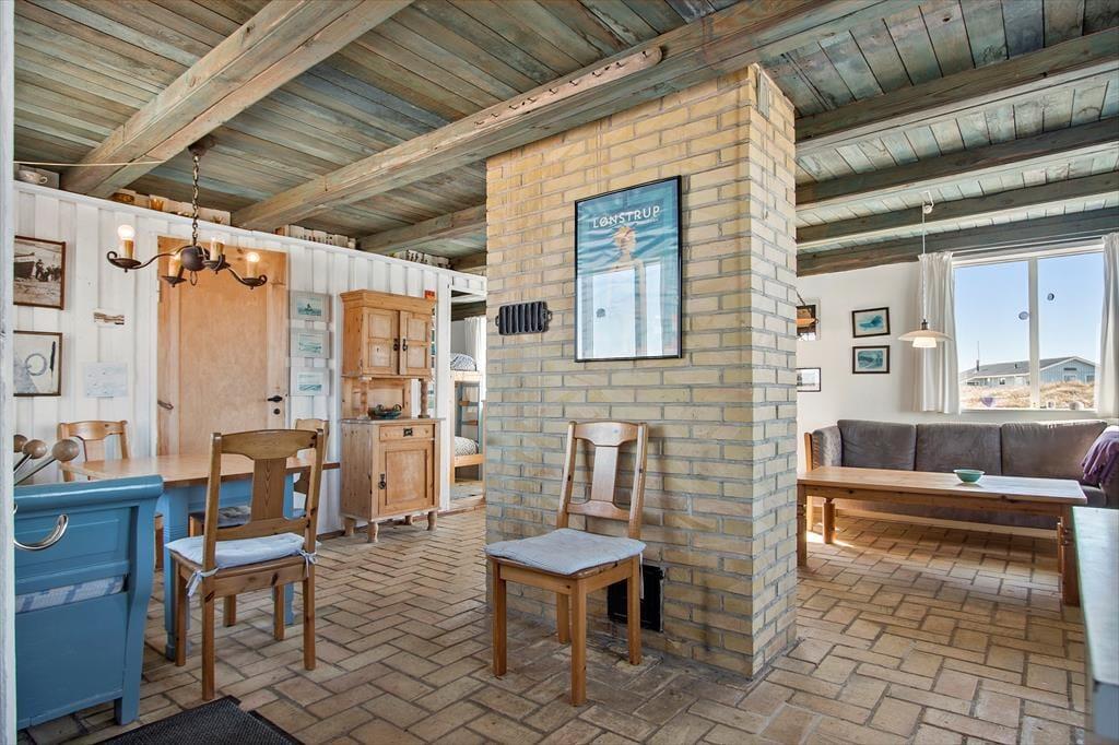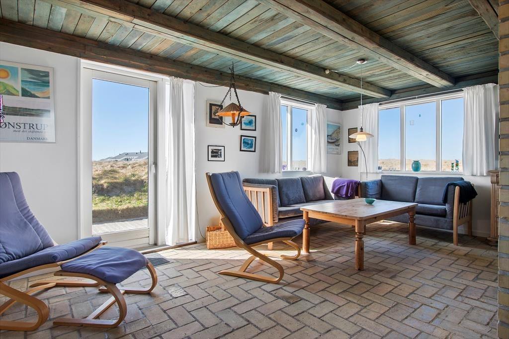 Sommerhuset ligger kun få meter fra Vesterhavet og de stejle klinter, som er så karakteristiske for kysten ved Lønstrup. De er ca. 200 m til trappe til stranden. Samtidig er der kun meget kort afstand til Lønstrup centrum, hvor en helt speciel atmosfære skabes af kunsthåndværkere, som arbejder og udstiller i byen. Der er også et godt og varieret udbud af restauranter og cafeer, hvor man kan få stillet både sult, tørst og lækkersult. Umiddelbart syd for feriehuset finder I Rubjerg Knude Fyr, som bestemt også er et besøg værd.