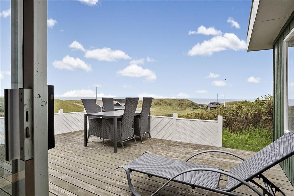 Udsigten inde fra huset er skøn, og den bliver kun endnu bedre, hvis I sætter jer ud på den nordvestvendte terrasse. Her er det ikke kun synssansen, der stimuleres, for I kan også mærke solens stråler, duften fra naturgrundens hybenbuske og muligvis en blid brise – måske endda i følgeskab med en varm kop kaffe eller et frisklavet måltid tilberedt på grillen. Syd for huset ligger der også en mindre terrasse, og derudover er den meget kuperede klitgrund holdt på helt naturlig vis.