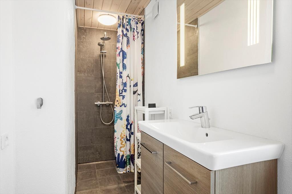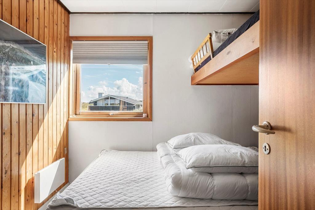 Det kombinerede køkken og opholdsrum er stedet, hvor hele familien kan samles. Her er lyst og mange pæne, personlige detaljer, som gør, at man føler sig hjemme og tilpas. Med brændeovn, fjernsyn og flere gode kroge til hygge samt et dejligt, nyere køkken er husets opholdsrum et dejligt rum, hvor man i ferien kan tilbringe mange gode timer. Sommerhuset har desuden to værelser, hvor der på begge er en dobbeltseng samt en hævet enkeltseng over (se eventuelt billederne). På badeværelset er der en bruseniche og i et skur står vaskemaskine og tørretumbler. Gode rammer for en hyggelig ferie meget tæt på Vesterhavet.