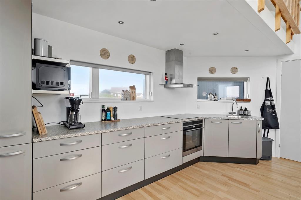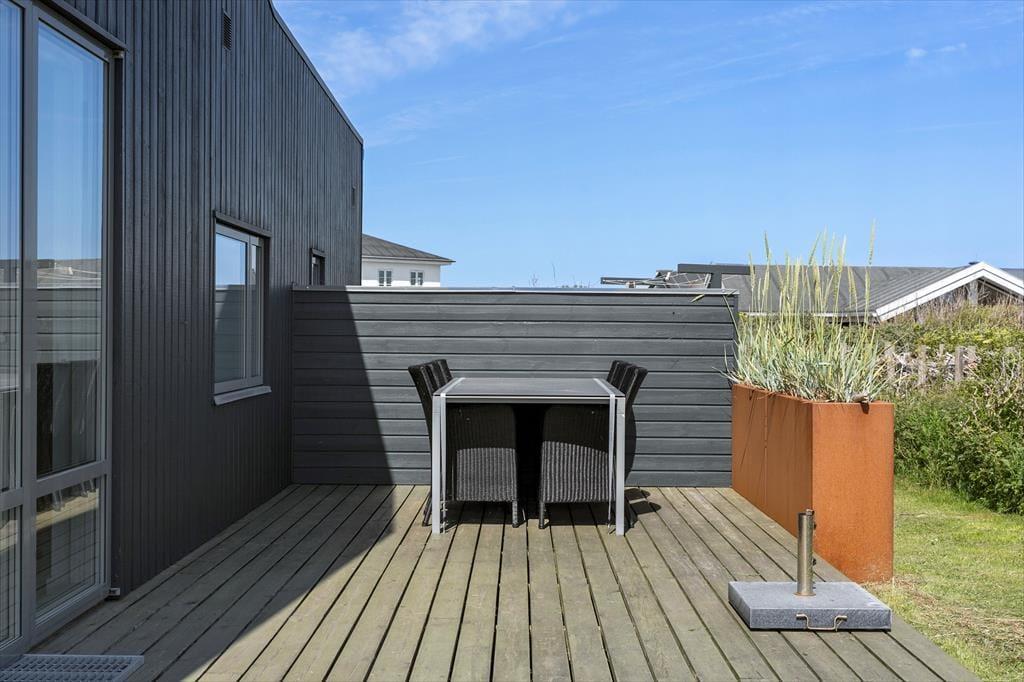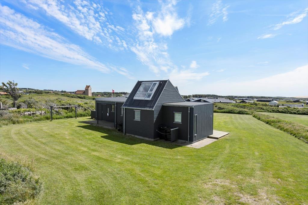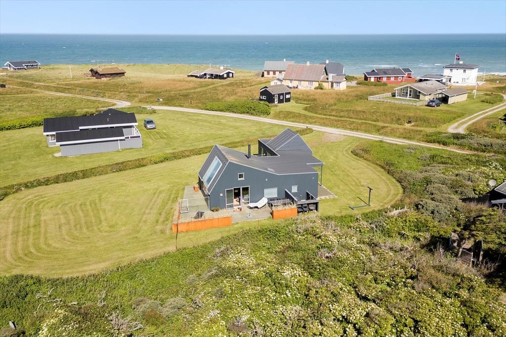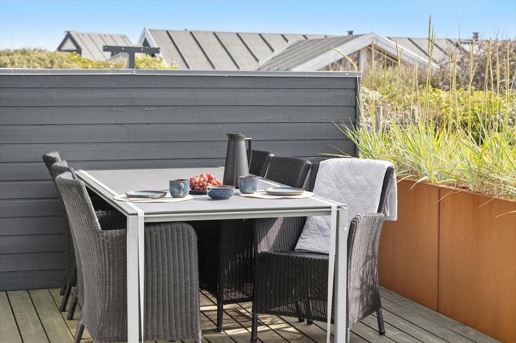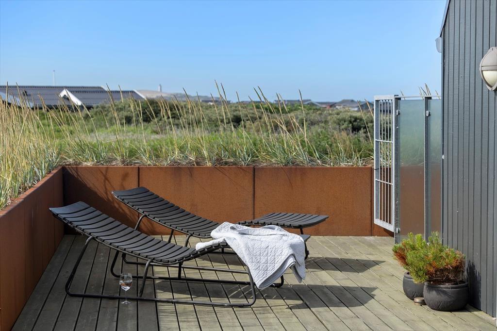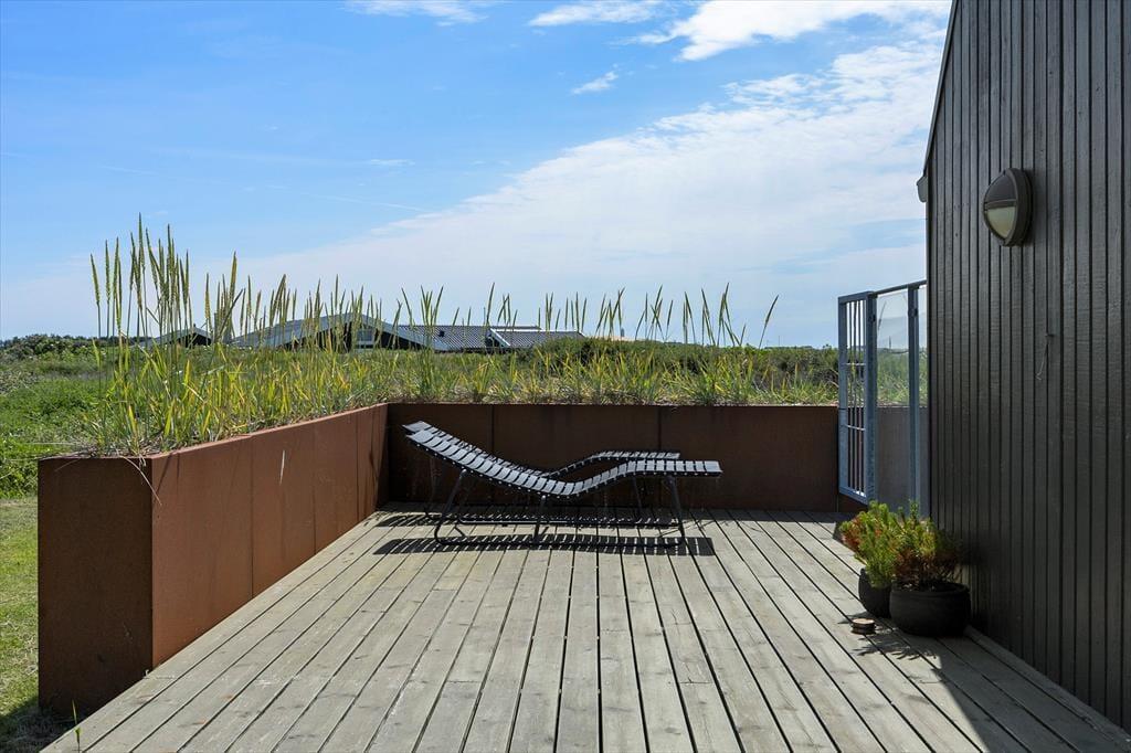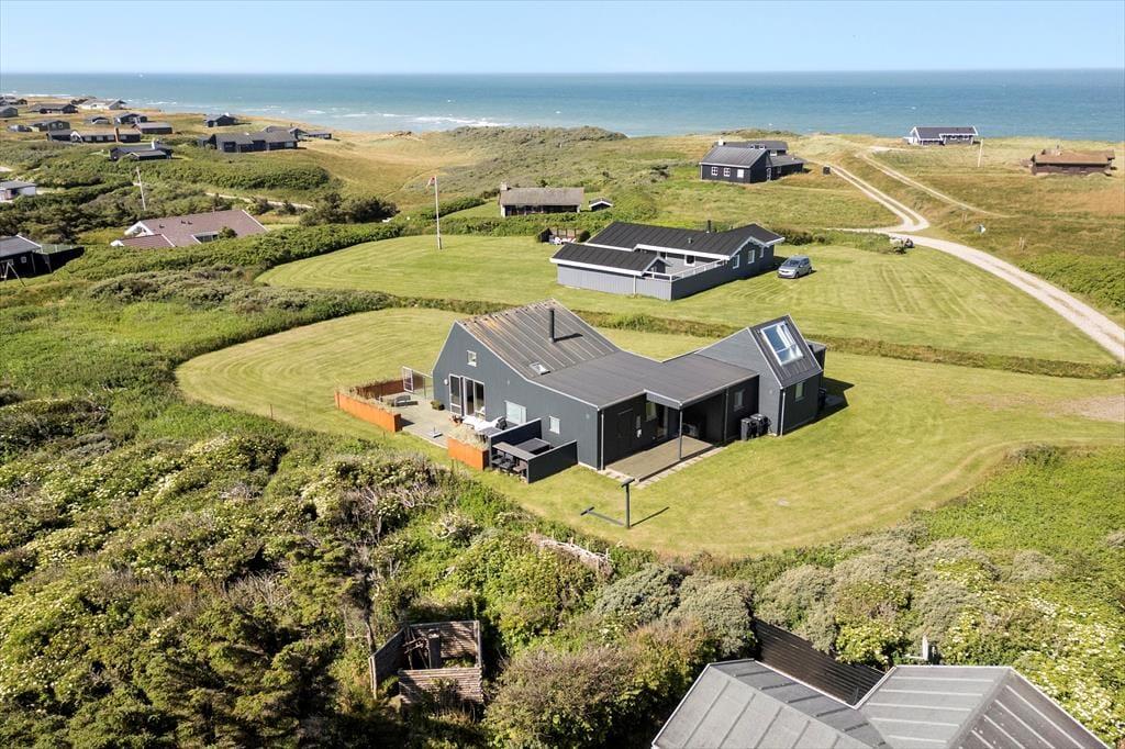 Udendørs venter en stor, kuperet naturgrund og skønne terrasser, der omkranser huset. Her kan du nyde livet under åben himmel, mens du tager sol på en liggestol, griller dagens fangst eller bare slapper af med udsigten til Rubjerg Knude og Lønstrup by. Gennemsigtige læhegn sørger for læ, selv når vestenvinden rusker i klitterne. Morgenkaffen kan nydes i ro og mag på den østvendte terrasse, mens solnedgangen over havet nærmest kræver, at du bliver siddende helt til dagens sidste lys forsvinder.