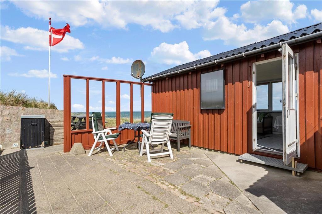 Der er en dejlig terrasse med udsigt over havet, som ovenikøbet kan nydes i læ, da der er etableret et gennemsigtigt hegn. Den skønne lækrog udgør den perfekte ramme for afslapning med lyden af havet i ørerne og en god bog eller familien som selskab. Desuden er der gode muligheder for at tænde op under grillen og tilberede aftensmaden i det fri.