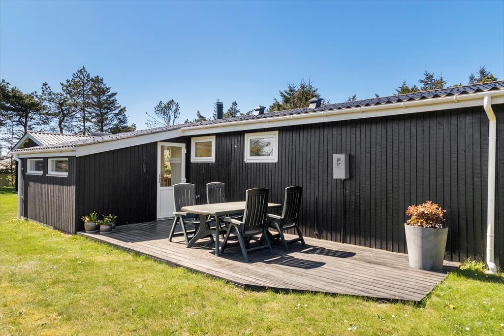 Rundt om sommerhuset er der anlagt flere terrasser, så I kan sætte jer lige der, hvor solforholdene er bedst. Nordøst for sommerhuset ligger en stor træterrasse, hvor I kan nyde solen lige fra morgenstunden og frem til klokken 14. Senere på dagen kan I rykke over på vestsiden af huset, hvor den store, delvist overdækkede terrasse ligger – den er for øvrigt også helt aflukket, hvilket er et hit for hundeejere og børnefamilier med små børn. De yngste familiemedlemmer kan desuden glæde sig til at spæne rundt på græsplænen på den store grund, der også byder på trampolin, gyngestativ og fodboldmål.