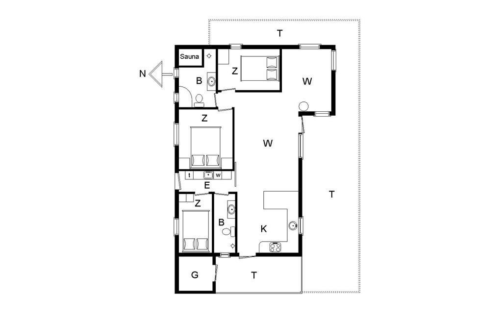 Velkommen til et skønt sommerhus med alt, hvad der er nødvendigt for en vellykket og afslappende ferie: hyggelig og smagfuld indretning, velfungerende hårde hvidevarer, god plads og praktisk opdeling med ét stort åbent opholdsrum, 3 værelser og to badeværelser. Det ene badeværelse har spa og sauna, så sommerhuset også har et strejf af luksus over sig. Her er helt ideelt til 2 par, som rejser sammen, men også for en familie med større børn,der kan hygge sig i fred og ro på den superskønne hems med to madrasser og tv; en lille hule hvor det hurtige bredbånd nok skal komme i anvendelse! Derudover er der en fin brændeovn i huset, som giver dejlig varme på kolde dage efter en frisk gåtur langs strandkanten. Et moderne og velfungerende sommerhus, som bare må opleves!