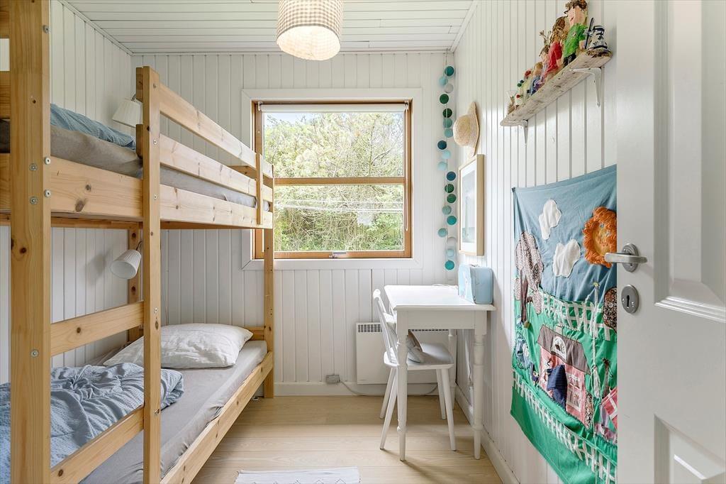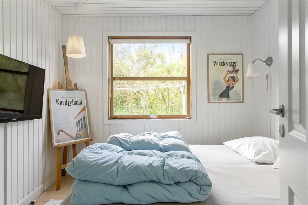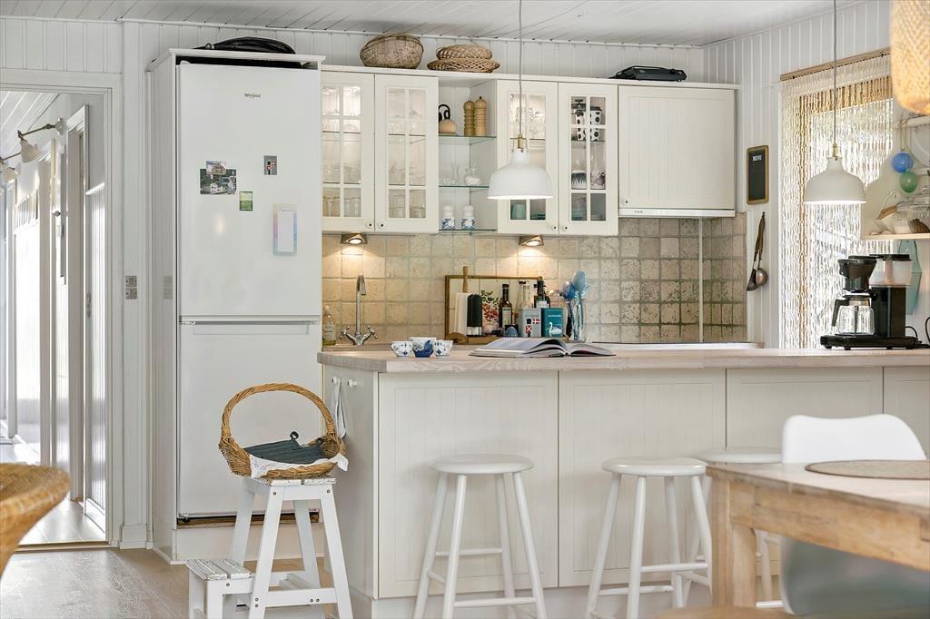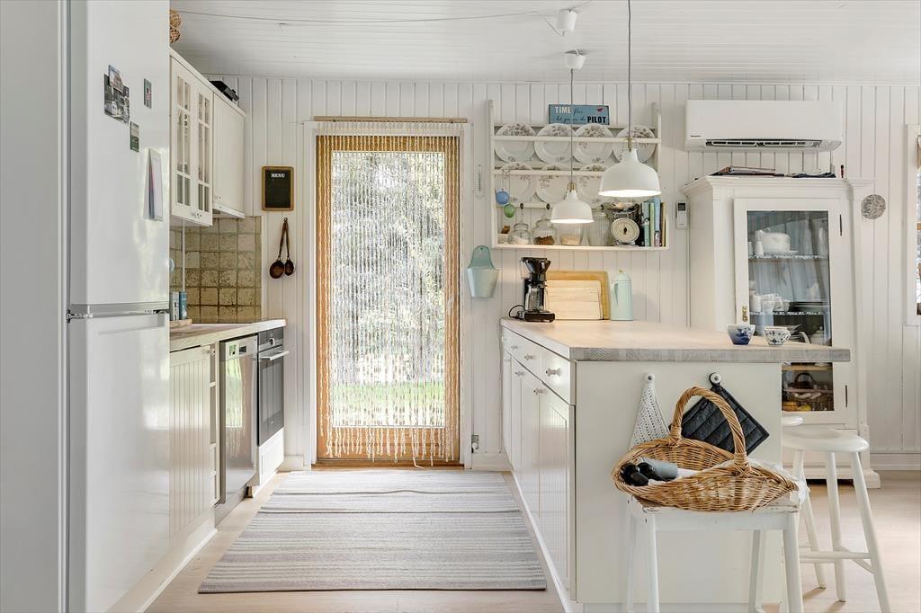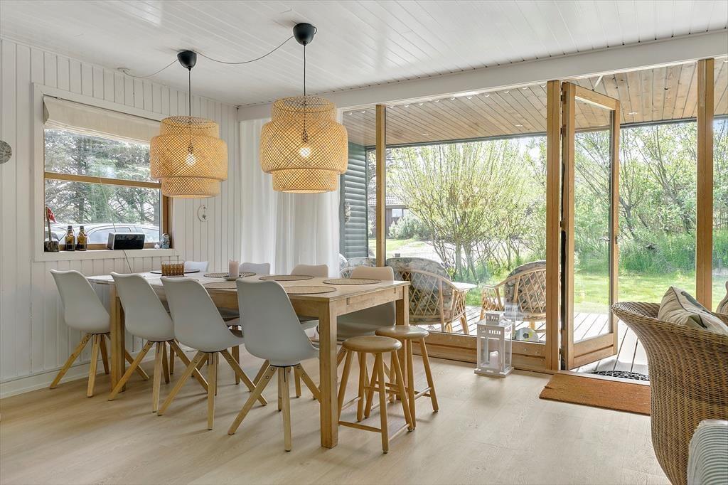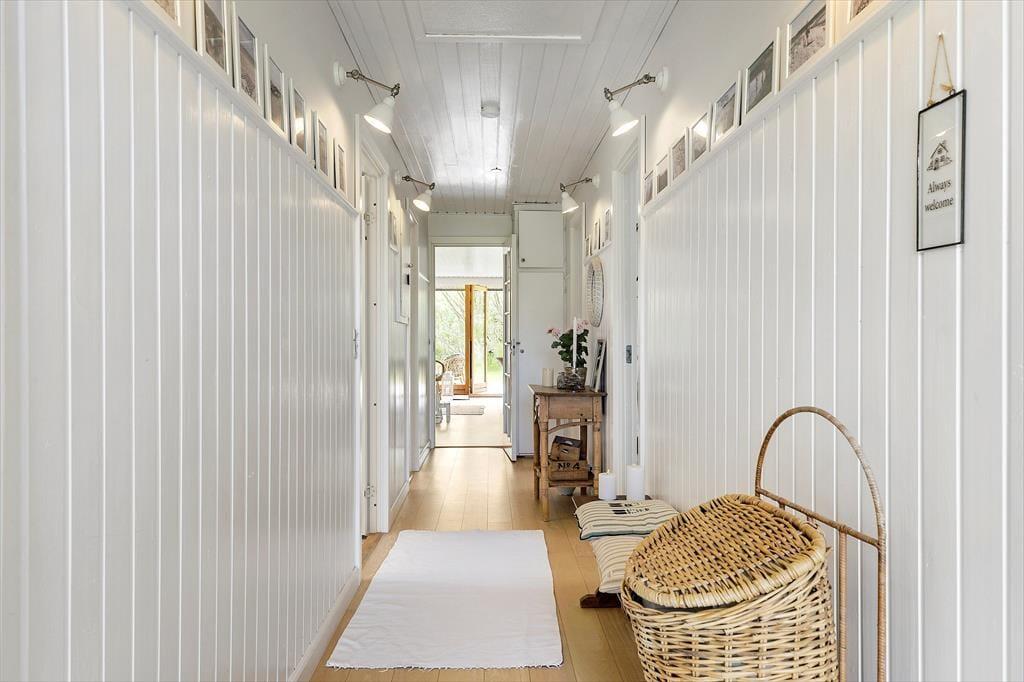 Sommerhusets lyse og moderne køkken ligger i åben forbindelse med stuen, hvorfra der er udgang til den overdækkede terrasse. Der er 4 soveværelser, alle med gode senge. Sommerhuset har to rummelige badeværelser, det ene med spabad. Med den gode plads er huset fint egnet til den store familie eller to familier som rejser sammen. Indretningen er lys og moderne med møbler i skøn og afslappet skandinavisk stil.
