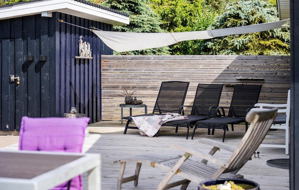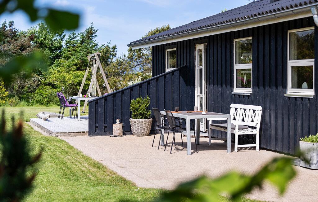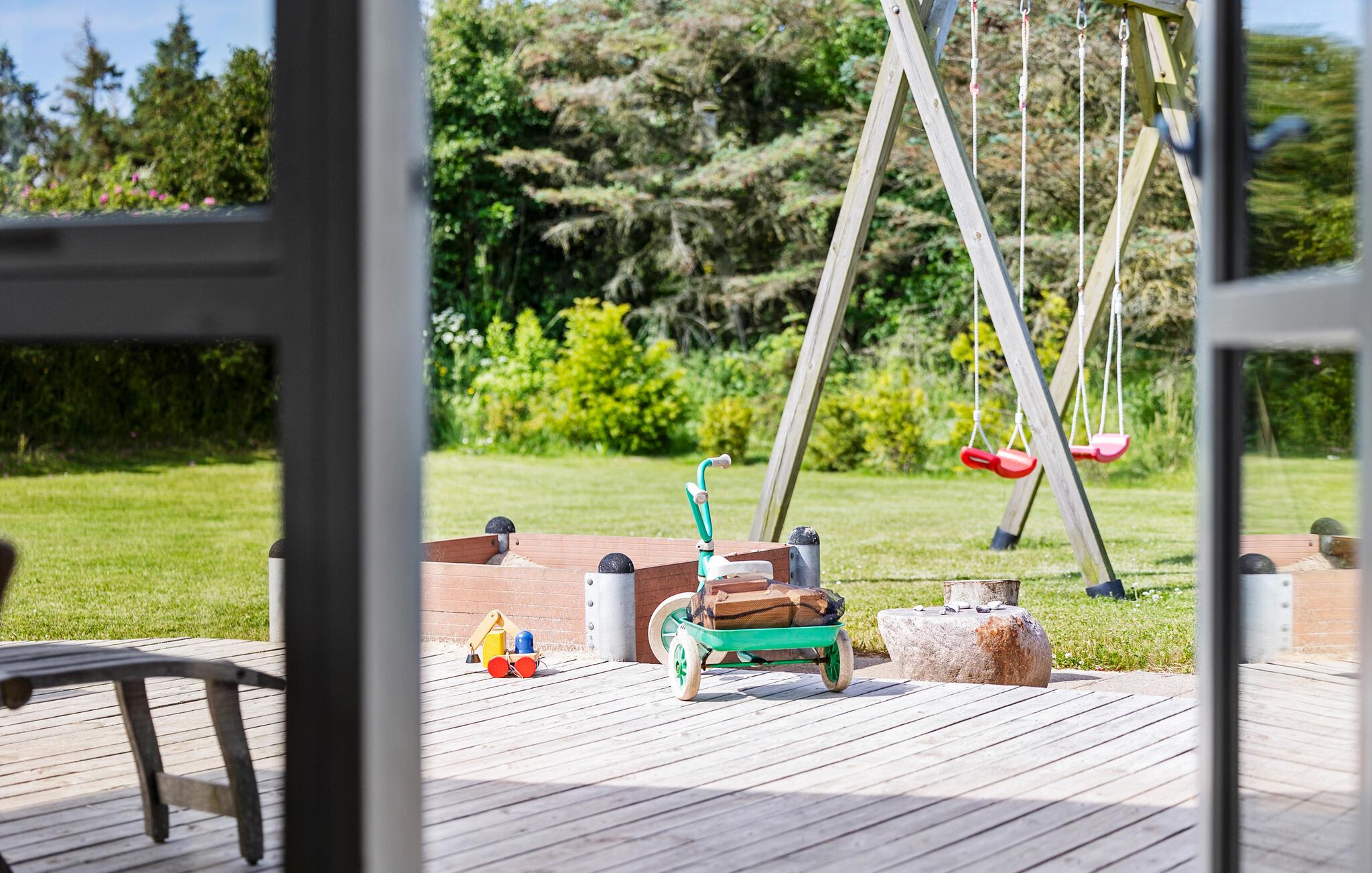 Udnyt den store terrasse med flere siddeområder og liggestole. Nyd morgenmaden udendørs eller nyd hyggelige grillaftener i den friske luft. Børnene vil finde masser af plads til at lege i den store have med gynge og sandkasse. De overdækkede hjørner omkring huset giver jer læ for vinden og fred.
