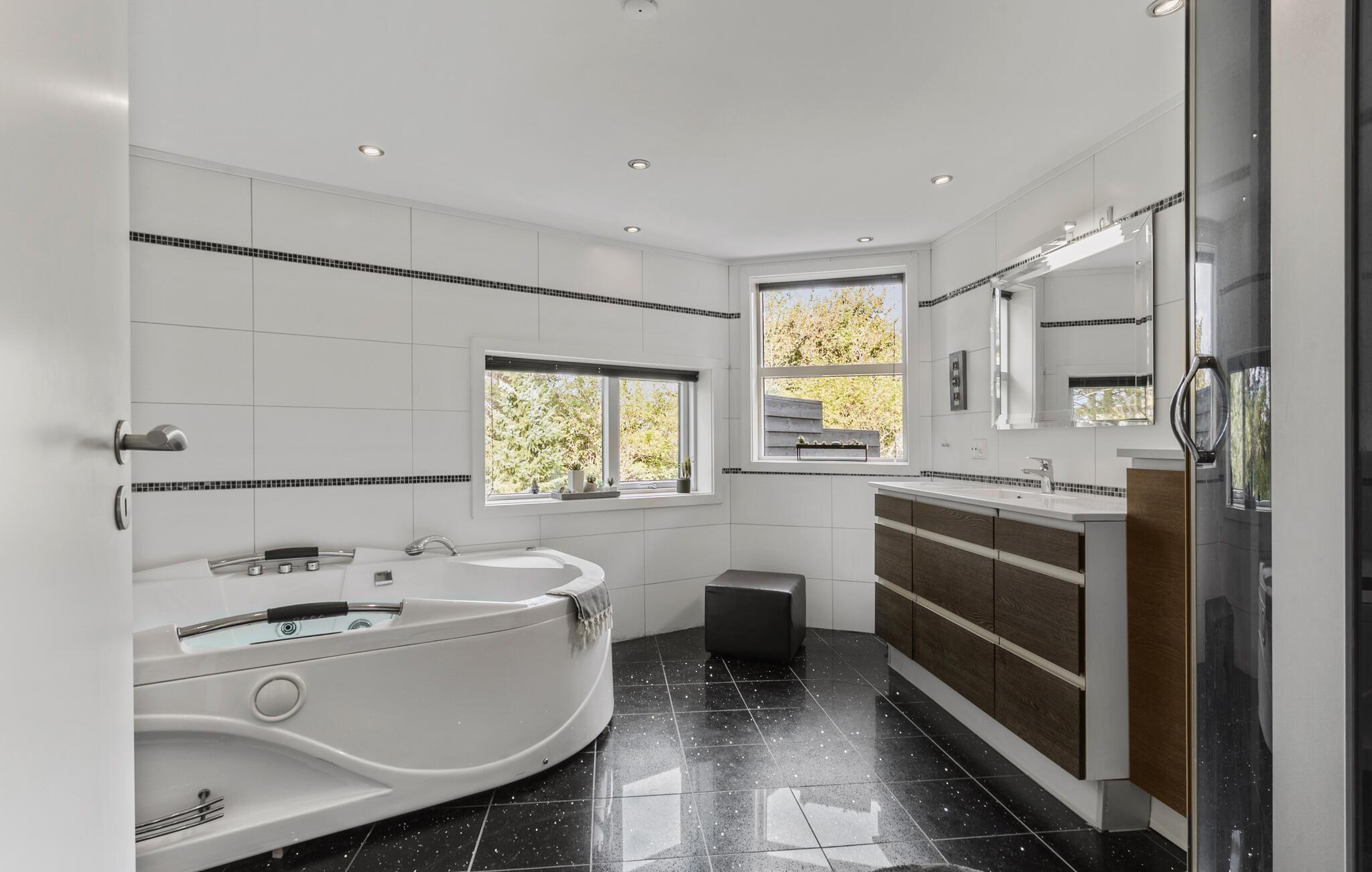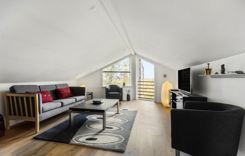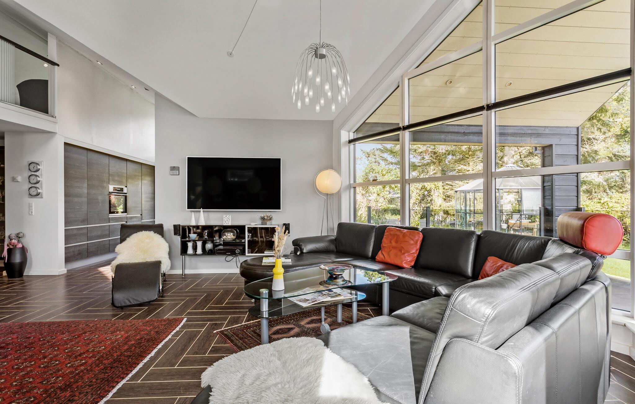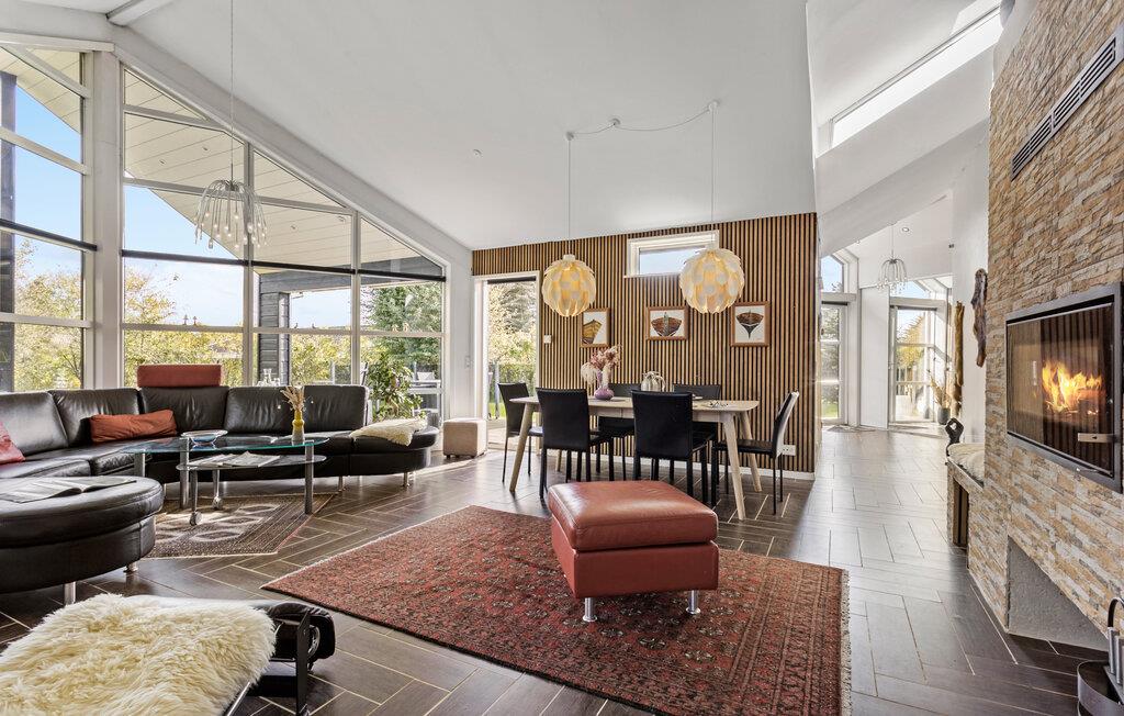 Dette hus er en sand oase. Her kommer I til at bo i rolige omgivelser for enden af vej. Boligen emmer af kvalitet og skønne indretningsløsninger, der gør det nemt at slappe af. Sæt jer til rette ved spisebordet i stuen og nyd lysindfaldet samt udsigten til den grønne have. På første sal er der endnu en stue, som er et herligt sted at slappe af med en bog. Denne stue har kig til havet. Rund dagene af med en hyggestund med ild i brændeovnen eller læn jer godt tilbage i spabadet. Efter en god nats søvn kan man åbne en terrassedør direkte ud til haven og lytte til fuglesang fra morgenstunden.