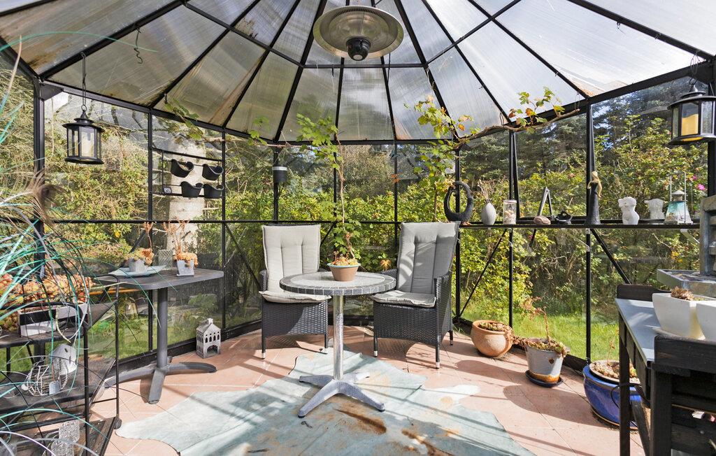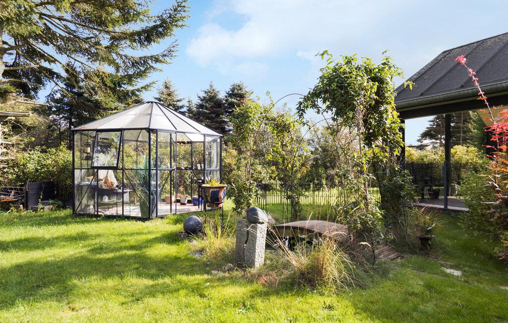 Rundt om huset er der en stor, flot anlagt have med terrasser og et hyggeligt orangeri. Her kan I nyde sommerdagene i ugenerte rammer. Benyt den lille sti fra huset, som går direkte ned til havet.