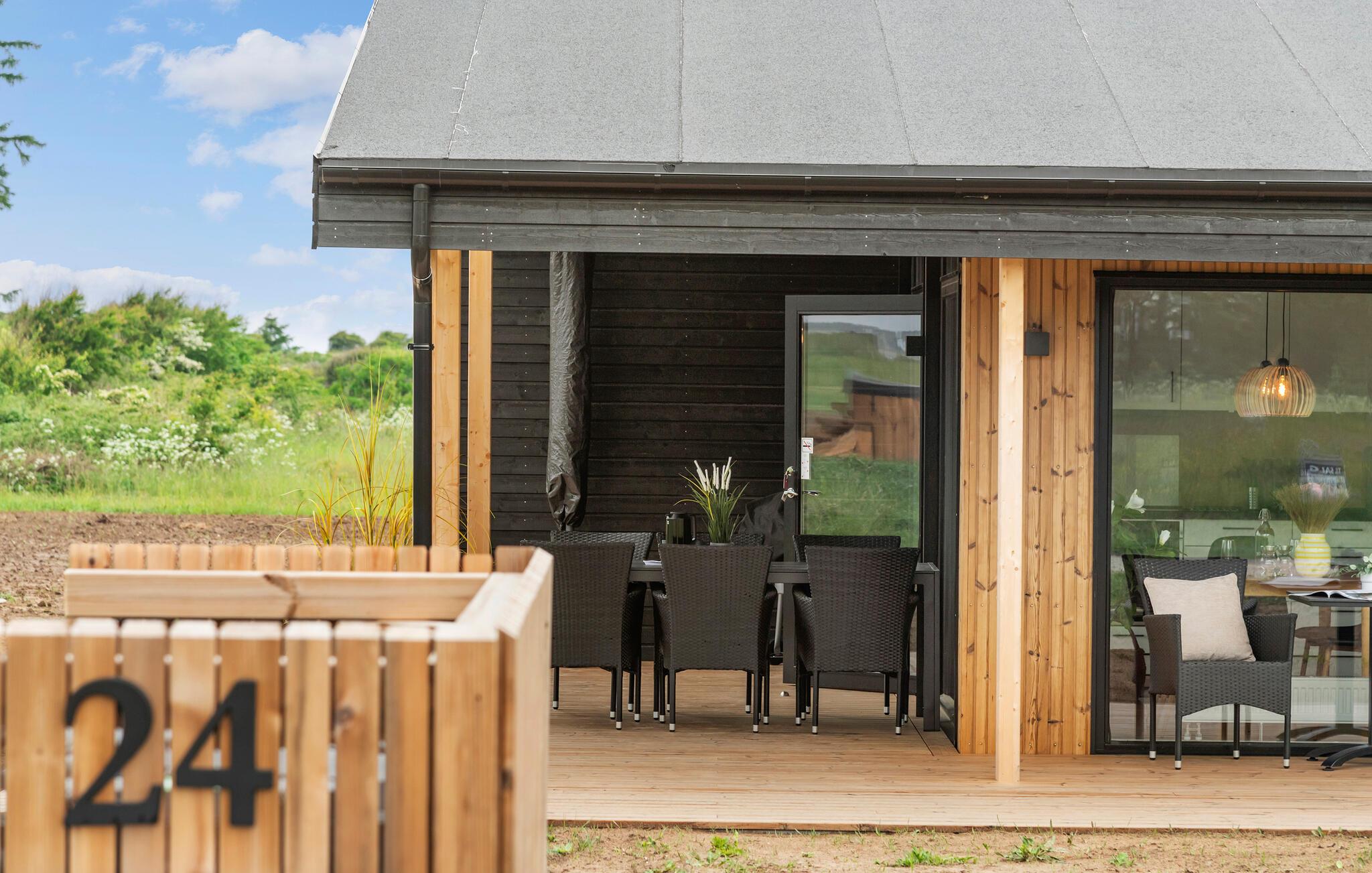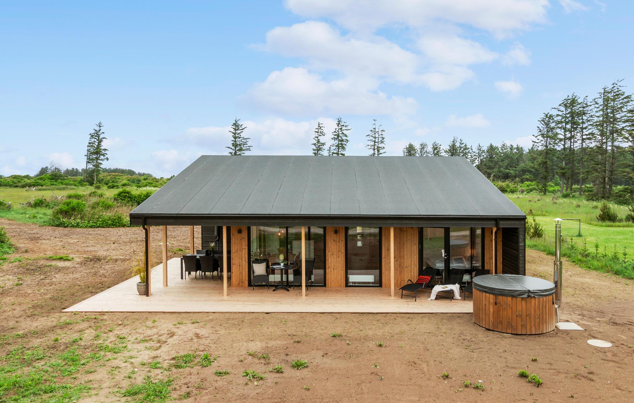 Moderne feriehus med sauna og vildmarksbad nær Lønstrup Strand i naturskønne omgivelser.