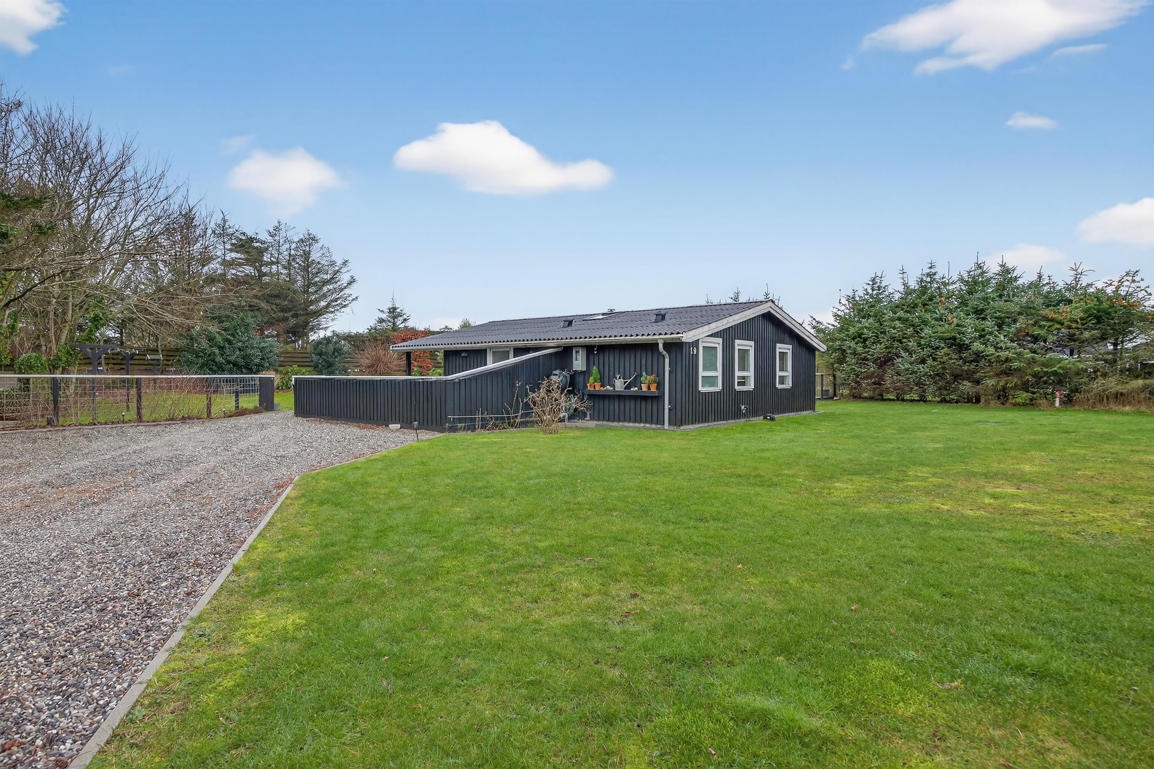 Udendørs fremstår sommerhuset særdeles velholdt, og der er lagt stor vægt på at skabe en varm og imødekommende atmosfære. Her finder du flere hyggelige terrasser samt en overdækket terrasse, hvor aftenerne kan forlænges, når duggen falder.