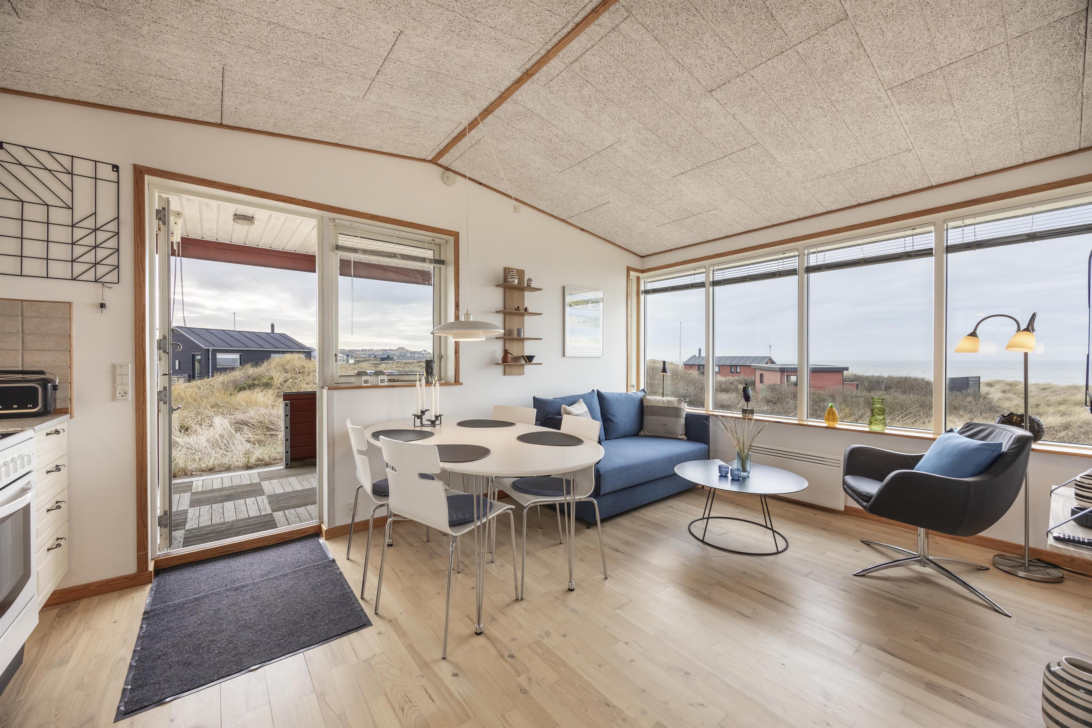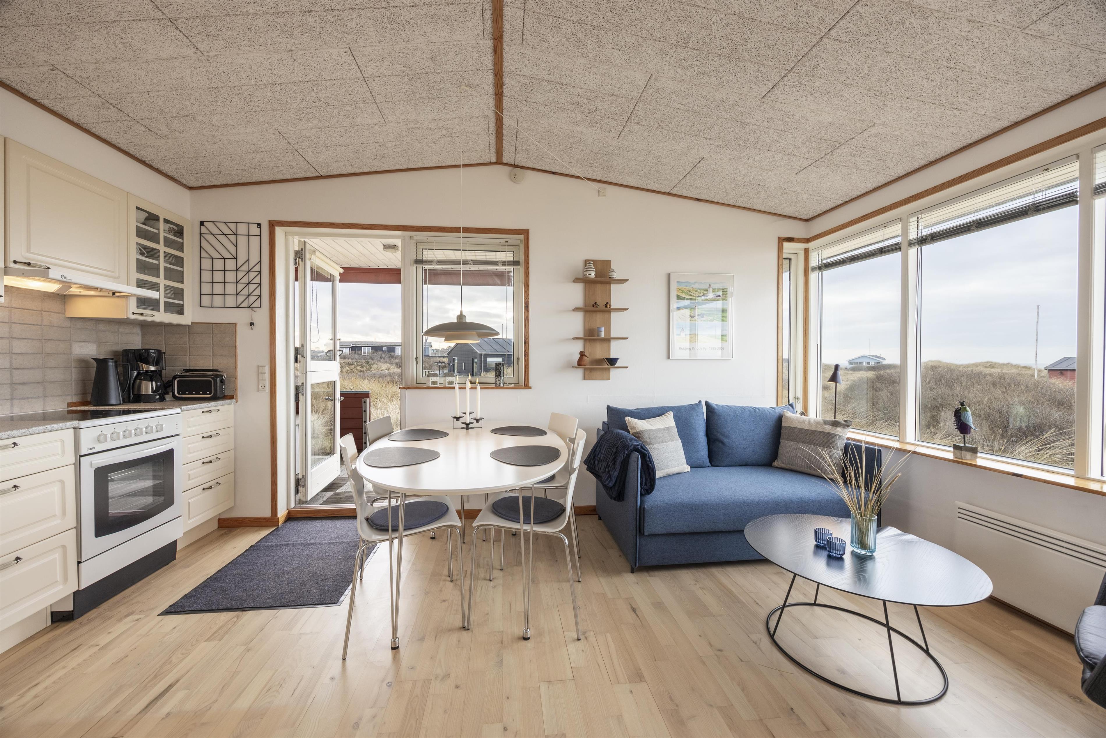 Dette lille og hyggelige feriehus er skræddersyet til en afslappende ferie for op til fire personer. Huset er indrettet med et køkken i åben forbindelse med spiseplads og stue. Det store vinduesparti lukker lyset og naturen indenfor og giver jer en fantastisk udsigt over Vesterhavet og den rå, nordjyske vestkyst. I stuen finder I to af husets sovepladser på en komfortabel sovesofa af høj kvalitet, og derudover rummer huset et soveværelse samt et lille, men funktionelt badeværelse. Indendørs er huset blevet gennemgribende moderniseret i 2025, og det stilrene, funktionelle interiør harmonerer smukt med den omkringliggende natur.