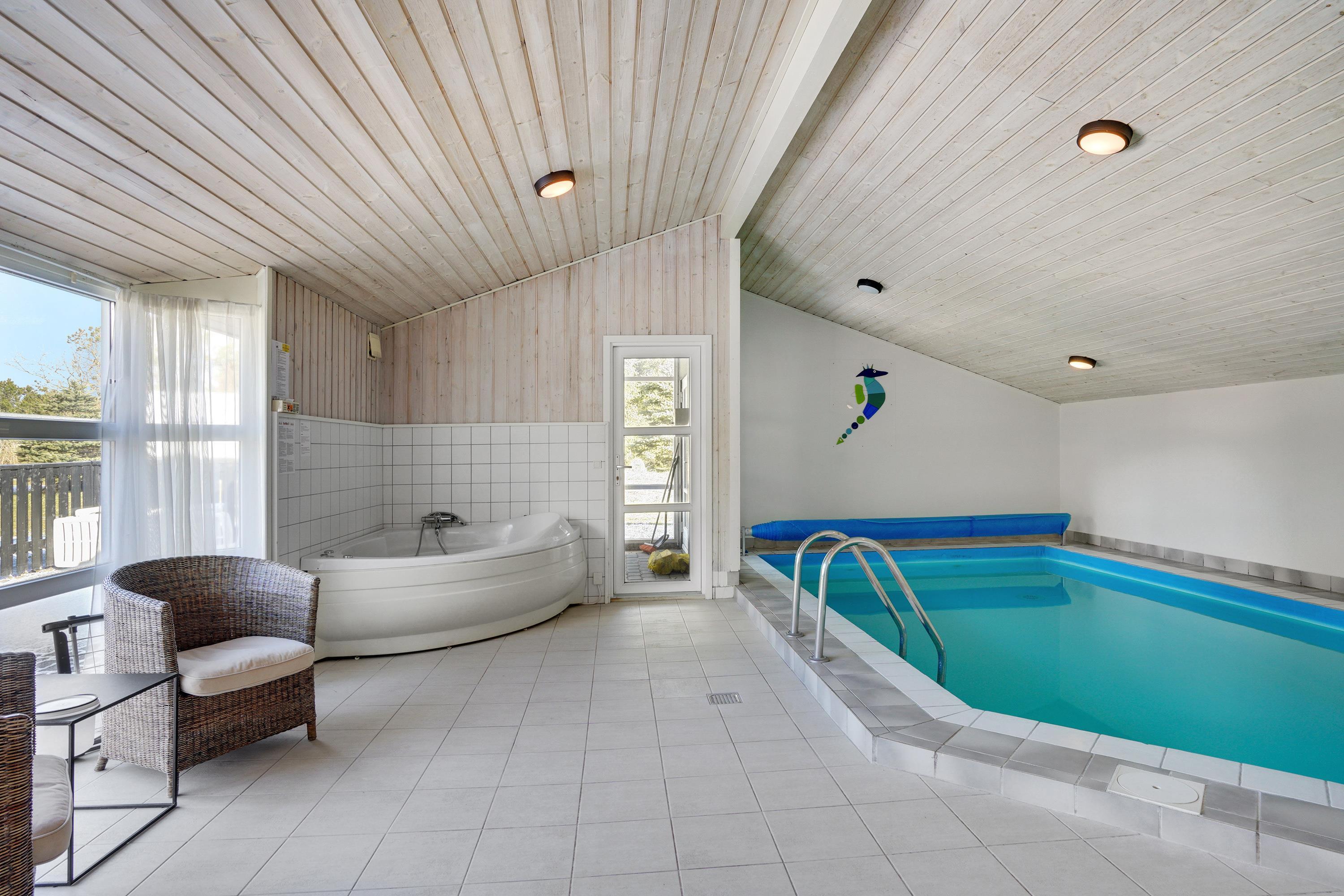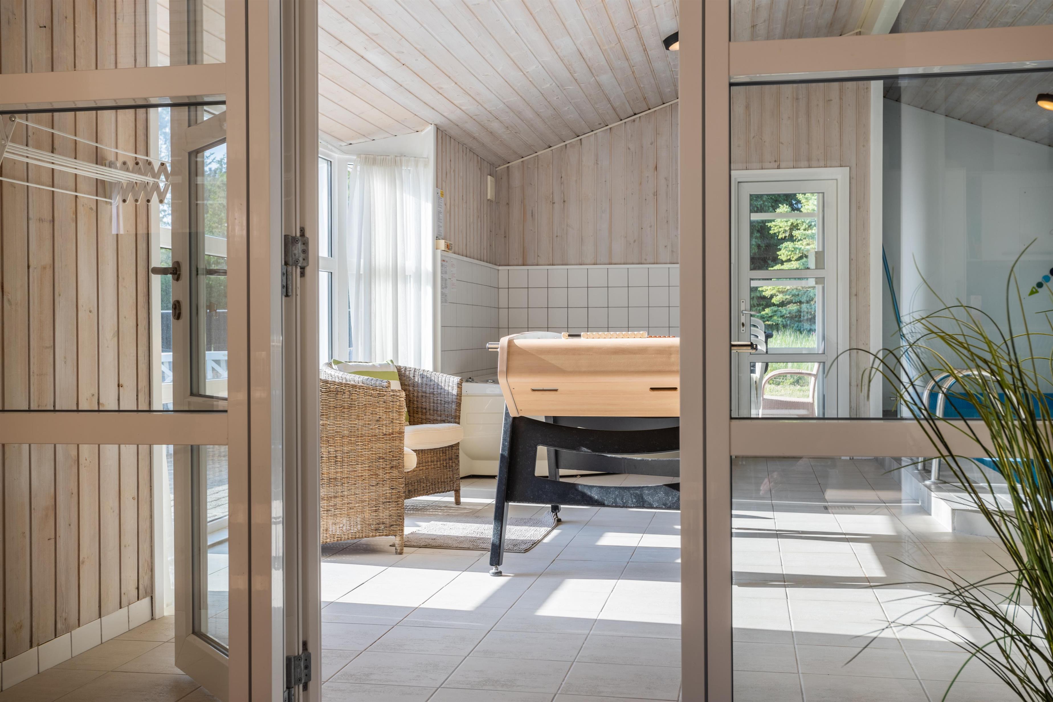 I husets modsatte ende finder I den store poolafdeling med swimmingpool og spa, hvor både børn og voksne kan hygge sig med vandpjaskeri og afslapning. Feriehuset er energivenligt og opvarmes med en varmepumpe, der sikrer et godt indeklima året rundt. Derudover er der opsat en ladestander til elbiler ved huset.