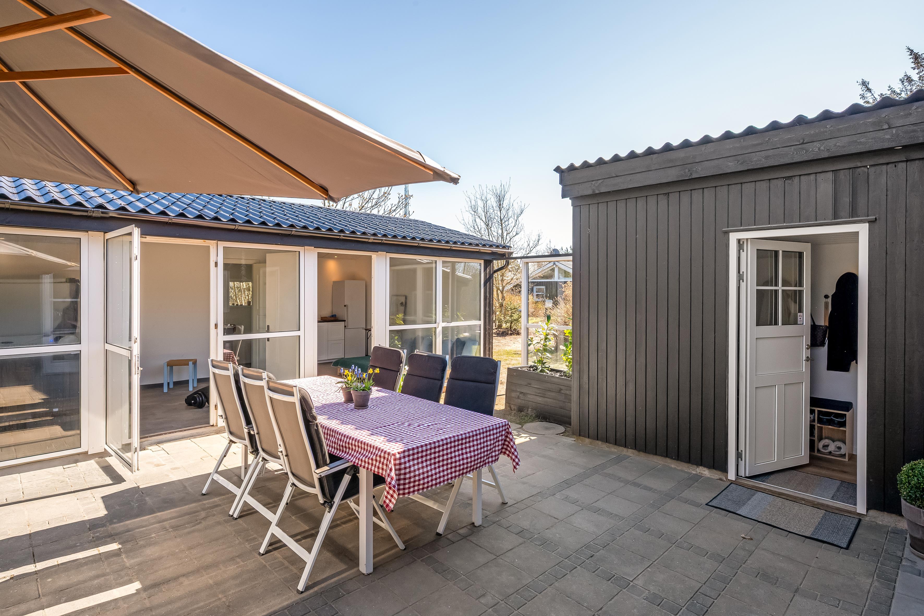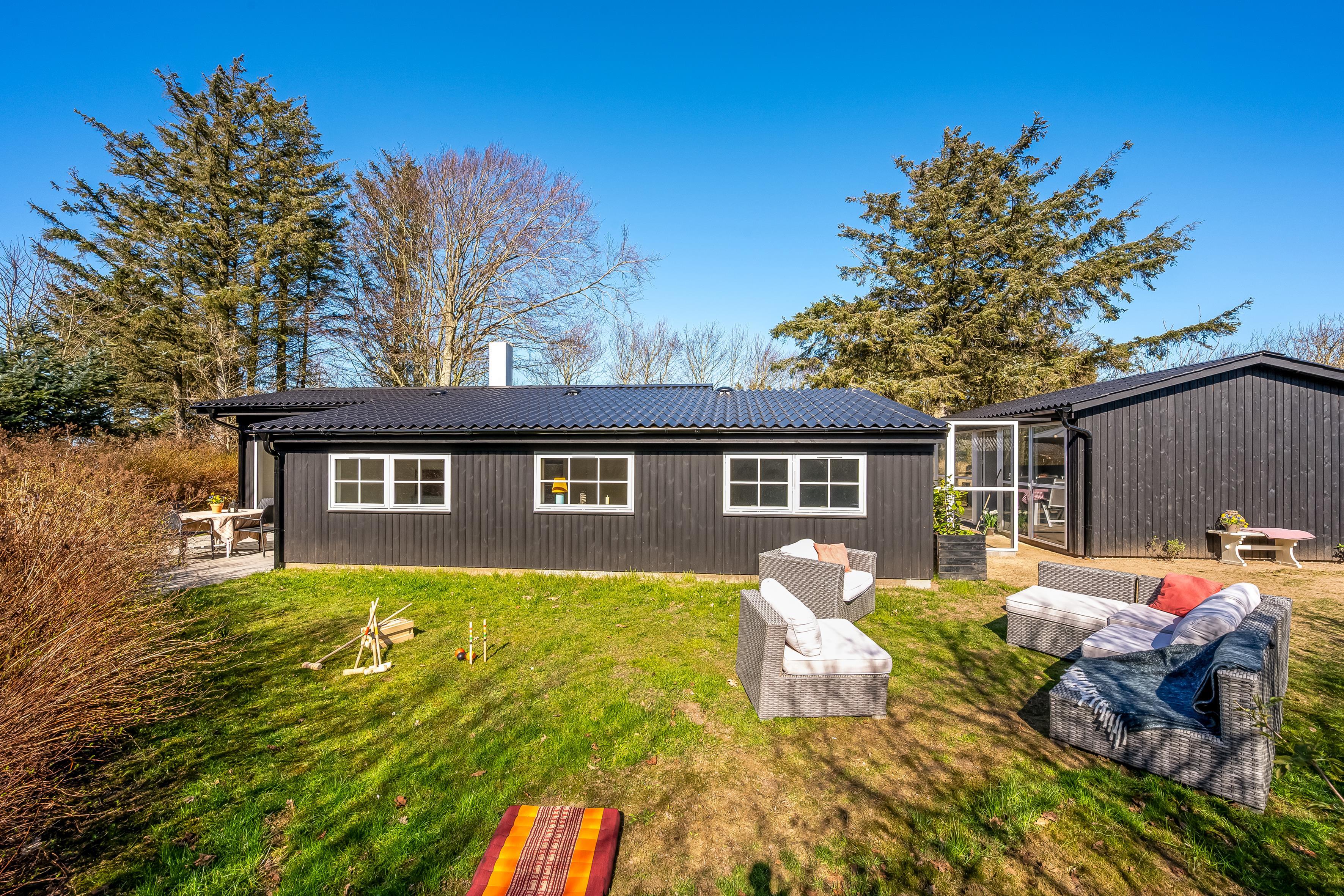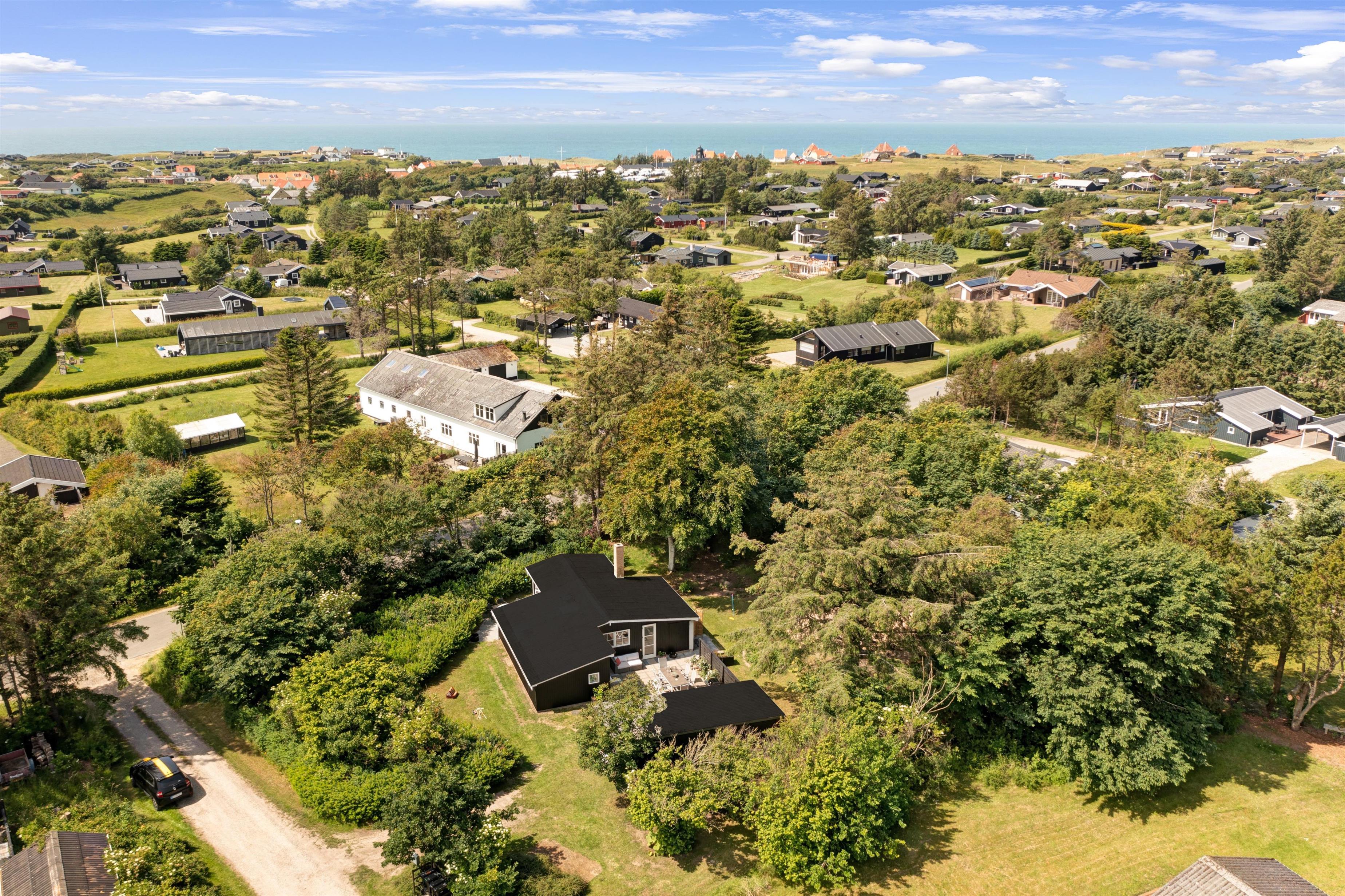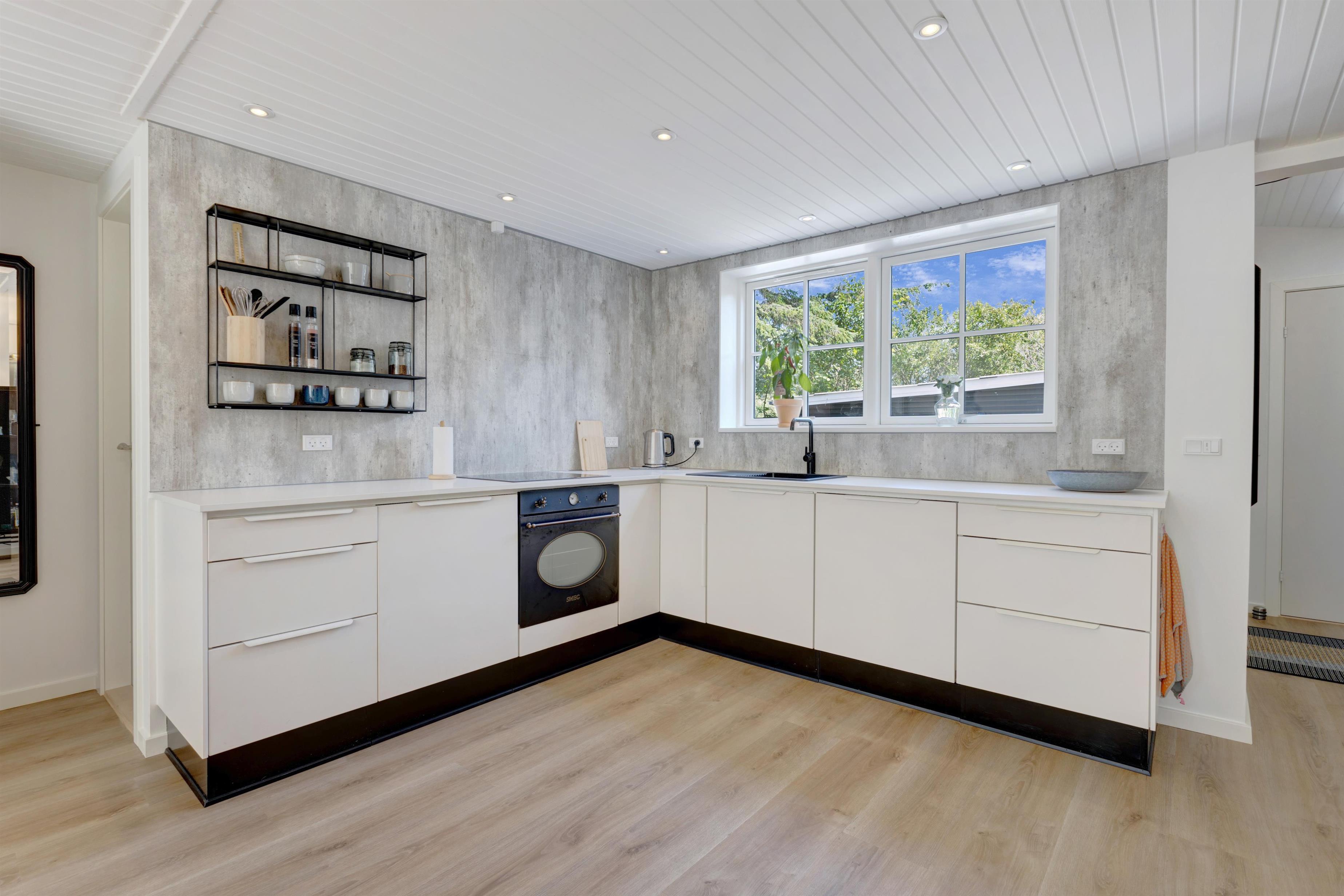 Når sommeren viser sig fra sin bedste side, er der masser af udendørsareal til solbadning, spil og leg. Sommerhuset ligger på en skøn grund, og der er terrasse i alle solbeskinnede vinkler, så det skulle være muligt at finde en skøn plads i sol eller læ. Du er under en kilometer fra stranden og Lønstrup by. Inden for en kort radius har du derfor indkøbs- og transportmuligheder samt restauranter, kunstbutikker mm. Er der ikke vejr til at være ude, kan du hoppe i den store jacuzzi i husets anneks, hvor I også kan sove to personer. I annekset er eget køkken og badeværelse.