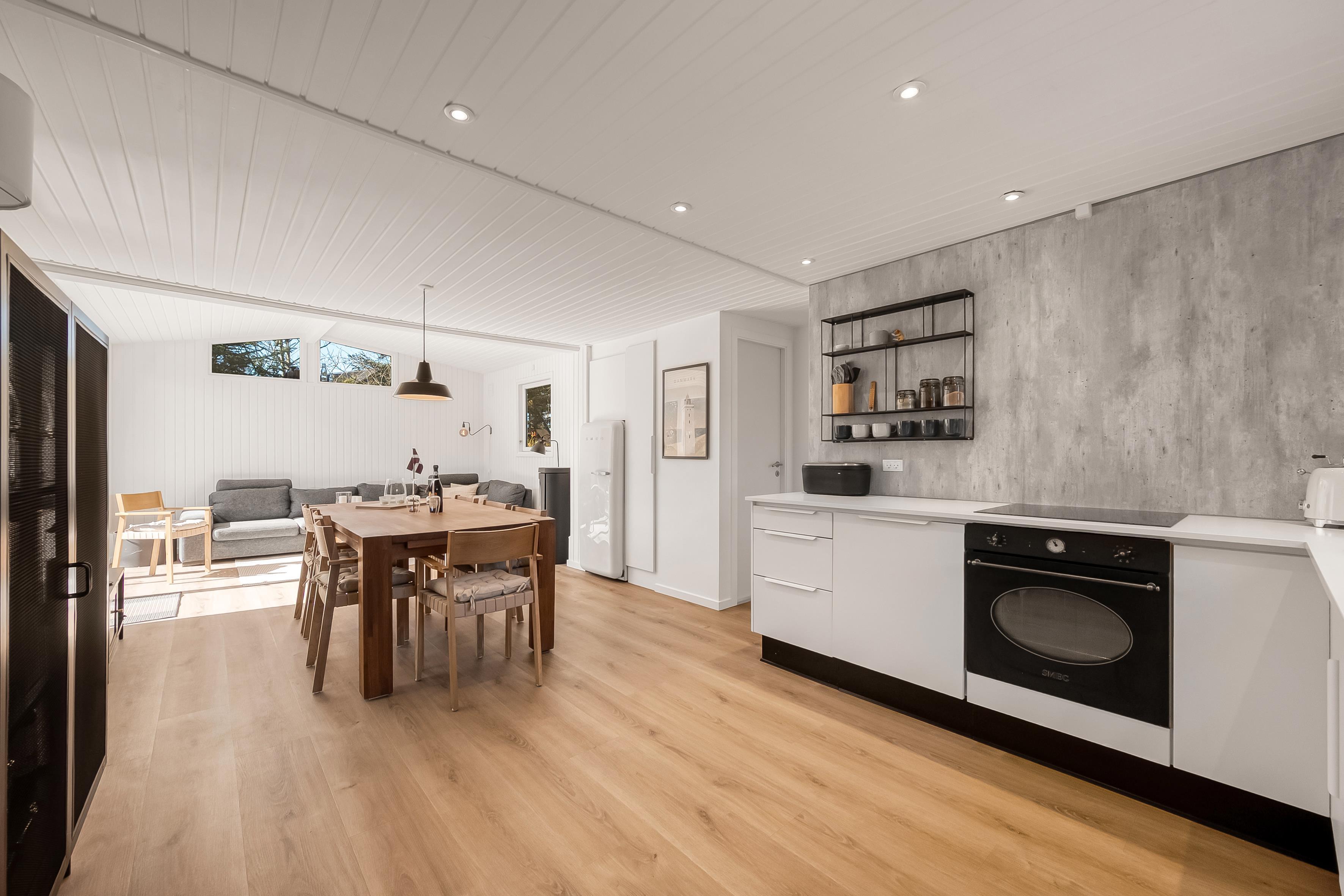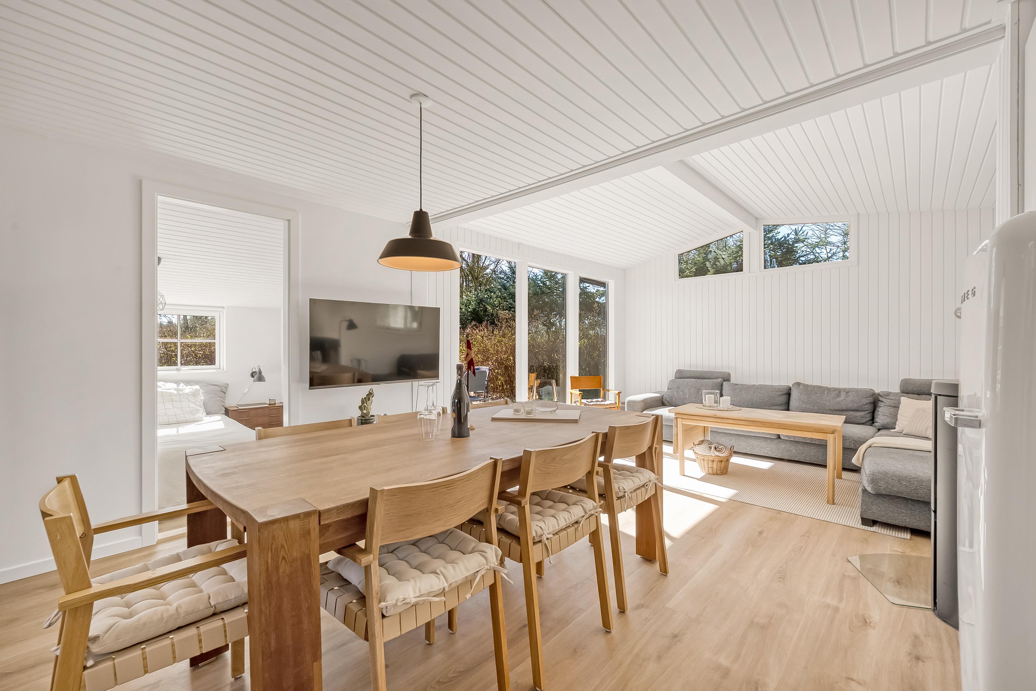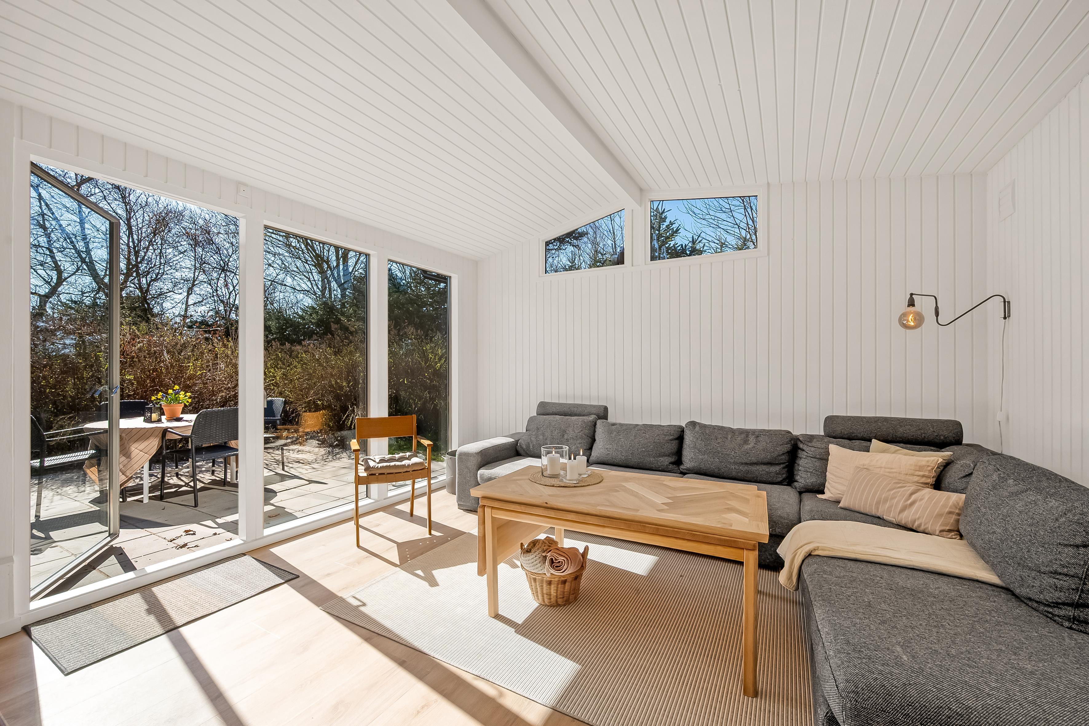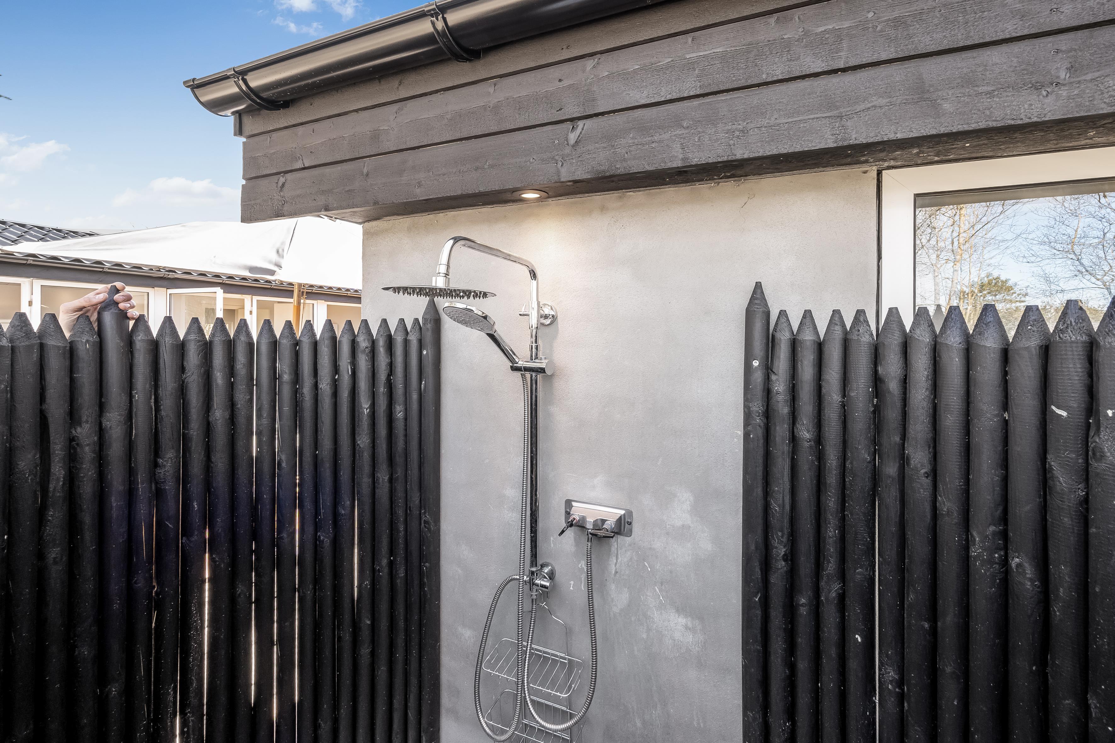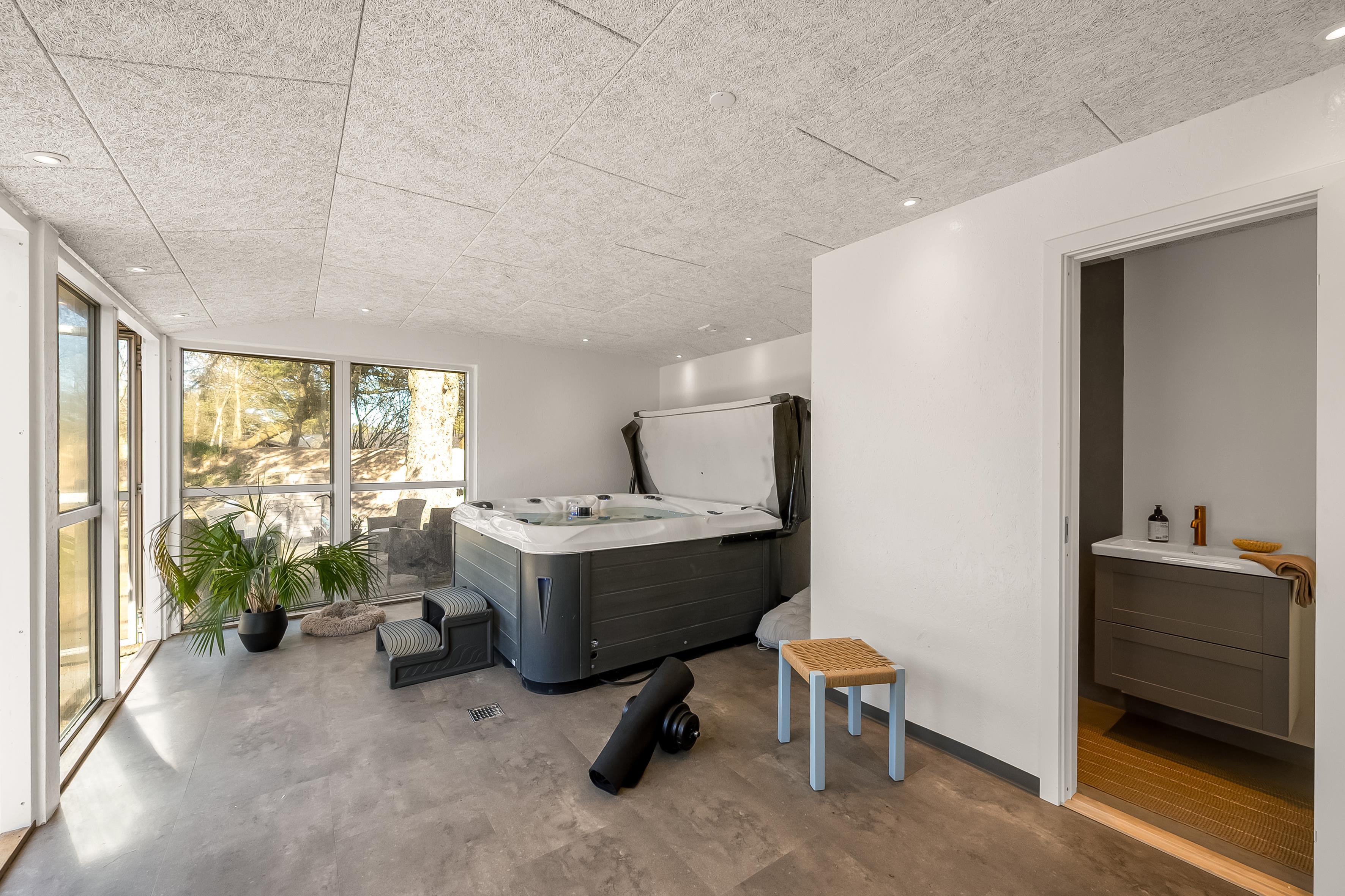 I denne perle af et nyt sommerhus kan I opholde jer 10 personer. Her er store, lyse rum og en stilfuld indretning med lyse træelementer, der giver en varm og indbydende atmosfære. Badeværelset inde i huset er med to brusere og badeværelset i annekset er med 1 bruser - begge rum er stilsikre og yderst lækre. Køkkenalrum og stue er super indbydende til mange timers hygge med et flot, åbent køkken og komfortable møbler. Der er store dørpartier ud mod en af husets dejlige terrasser. Fra annekset kan du også åbne de store dørpartier ud mod terrassen, og her kan du slænge dig i den store jacuzzi, før turen går ud på terrassen til grill og bålhygge.