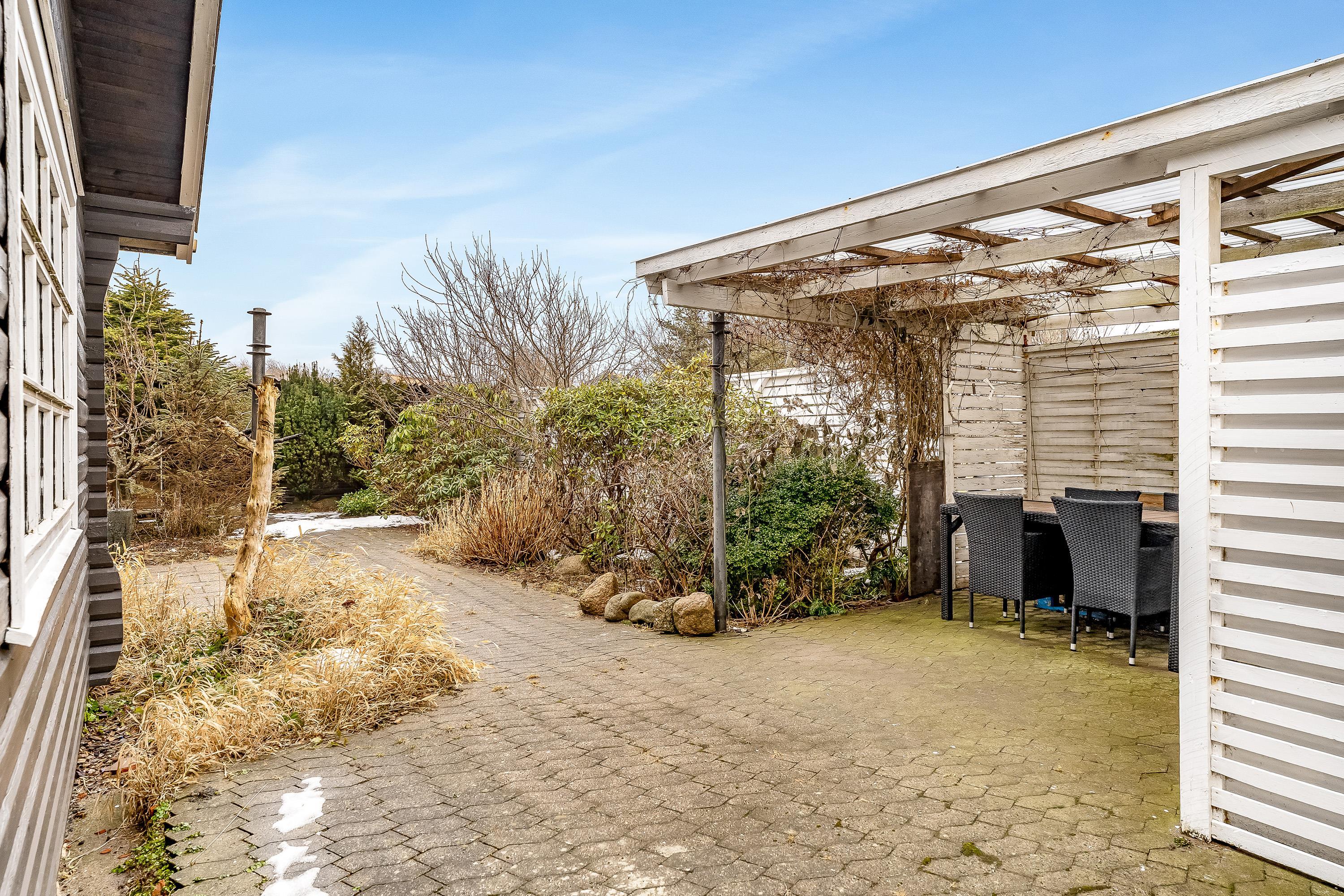 Fra køkkenet og stuen er der udgang til en dejlig stor terrasse, hvor spisepladsen er overdækket, og man kan nyde det danske sommervejr fuldt ud. Husets beliggenhed tæt på Lønstrup og Vesterhavet gør, at man er dejlig tæt på alting, og alligevel i god afstand fra trafik og larm fra byens liv. Der er naturligvis havemøbler og grill til rådighed. Og selve Lønstrup by er stedet, hvor der er masser af plads, uanset om man ønsker outdoor aktiviteter, shopping og restaurantbesøg eller ro og fordybelse.