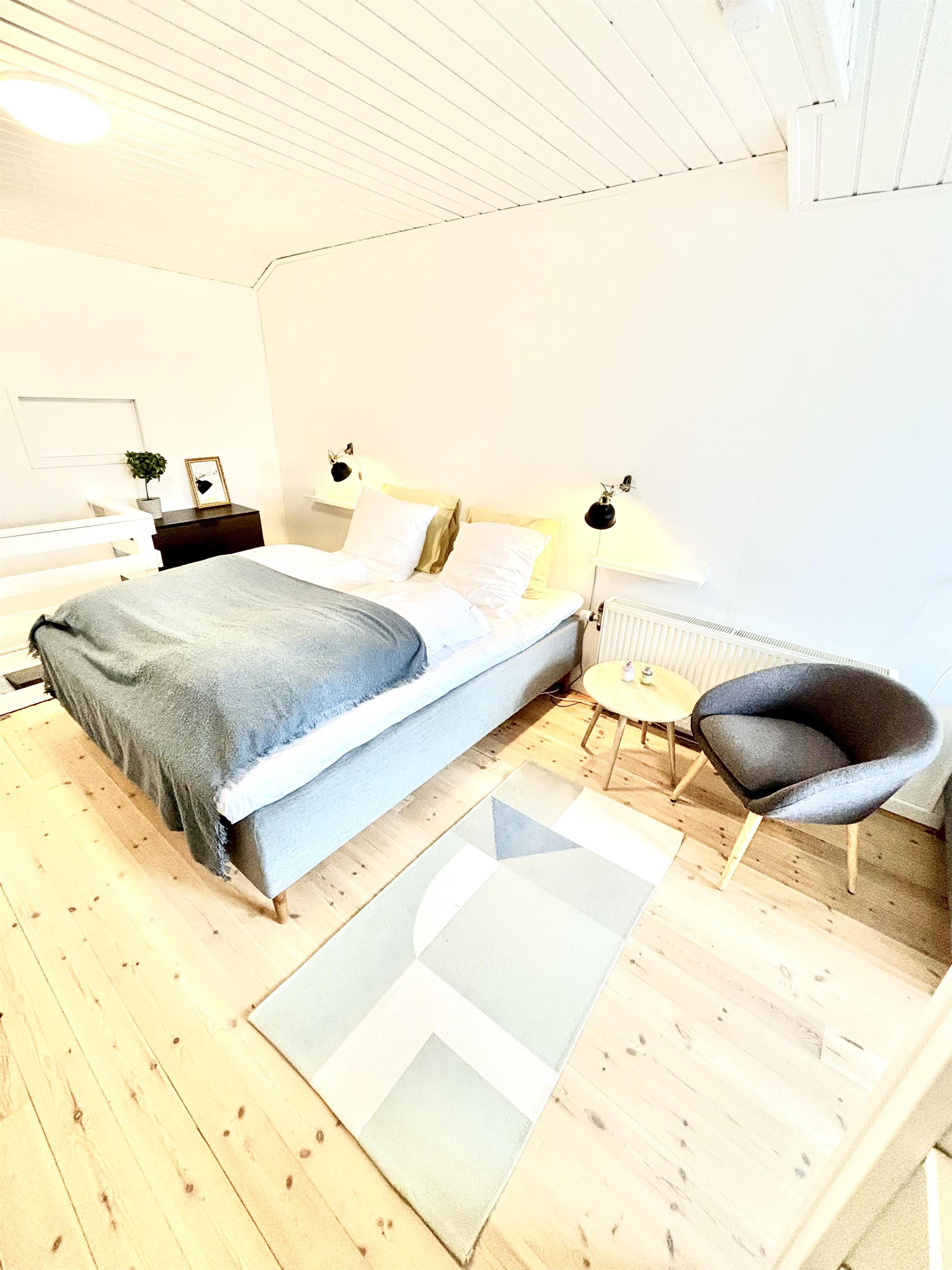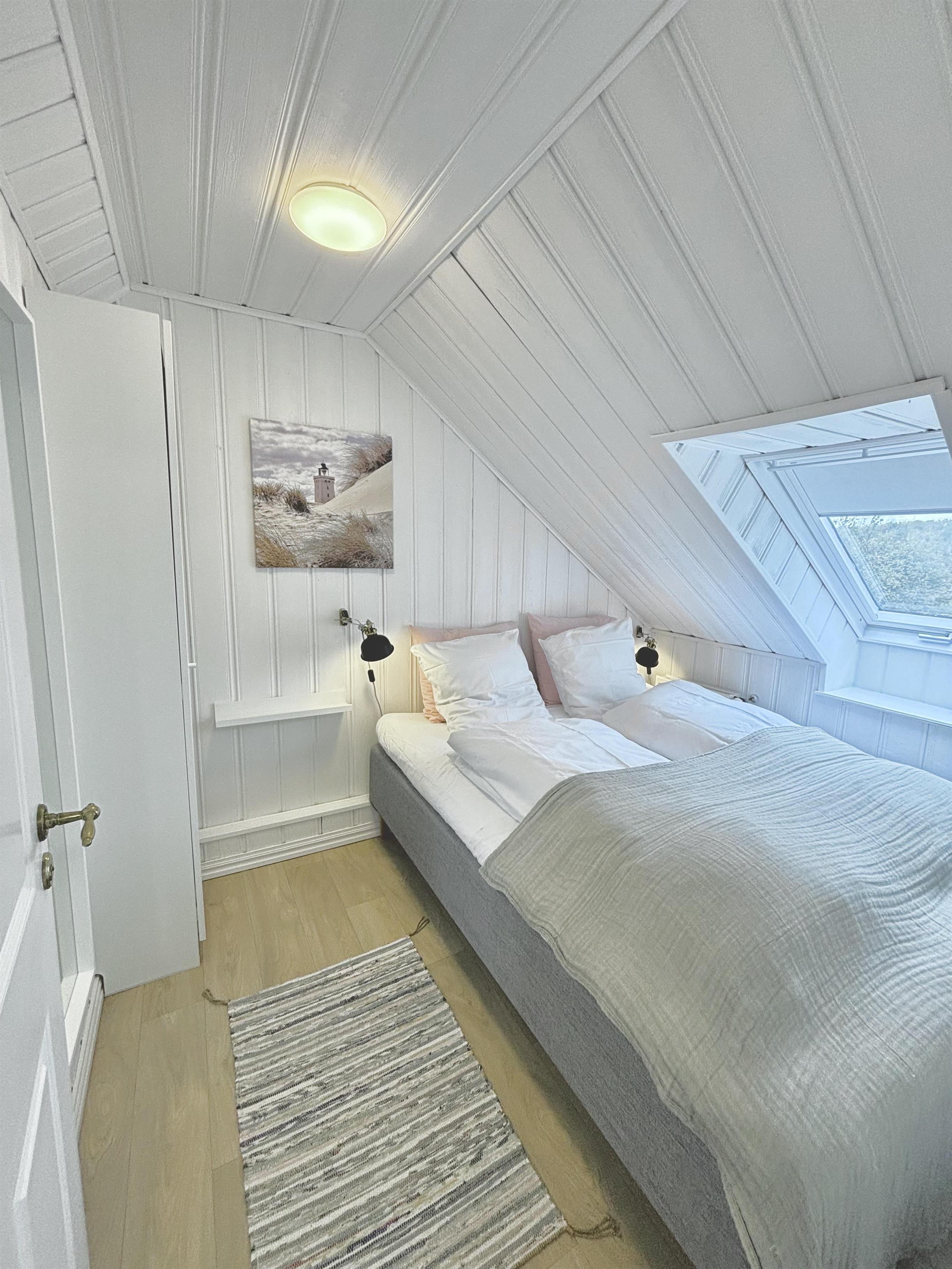 Høloftet kan imødekomme 5 gæster i 2 soveværelser med en dobbeltseng i hvert værelse samt 1 enkeltseng i stuen - alle senge er boksmadrasser med tykke topmadrasser, der sikrer en god nattesøvn efter en dag med aktiviteter i området. Derudover er der mulighed for 1 ekstra opredning i et rum med gennemgang. For dem, der ønsker ekstra forkælelse, tilbyder lejligheden en lille sauna og et karbad på badeværelset, der skaber en spa-agtig atmosfære. I denne lejlighed må man ikke have hund med!