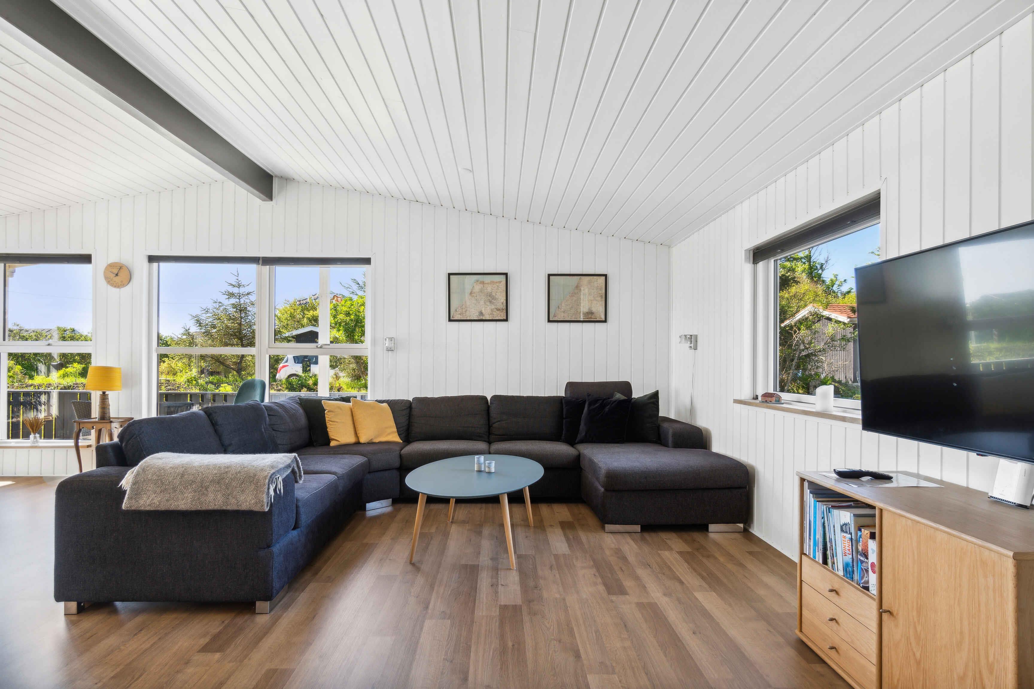 På en stor solrig grund i et fredfyldt sommerhusområde venter dette flot renoverede hus på at tage imod nye feriegæster, omkranset af dejlige terrasser, der er bare 5 minutters gang ned til den flotte sandstrand og det fascinerende Vesterhav.