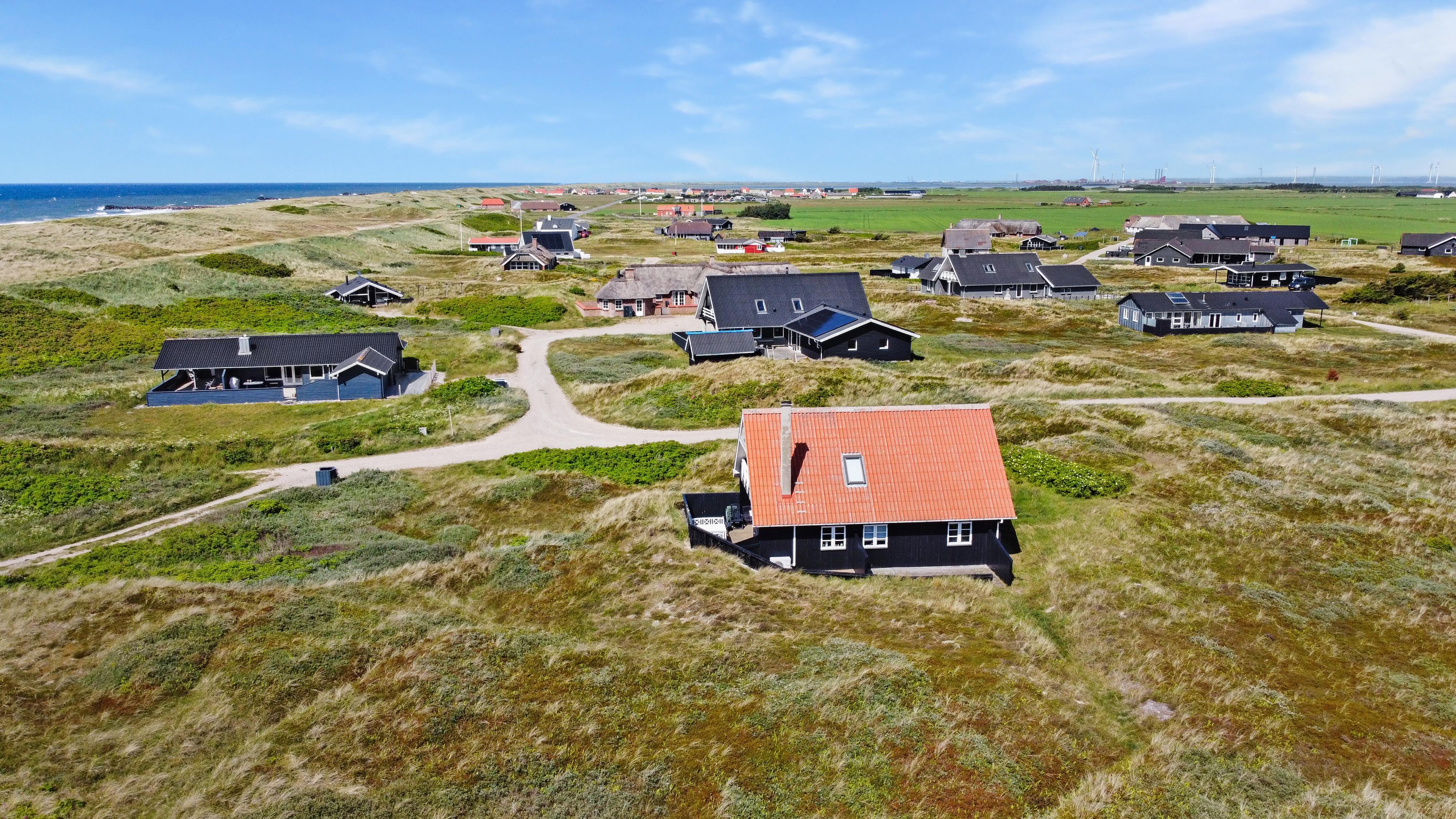 Huset ligger kun et stenkast fra klitterne og man kan nyde naturen direkte fra den afskærmede terrasse. Her er både grill og havemøbler til at benytte i mange glade ferietimer. Man kan gå direkte over til stranden som byder på badning, drageflyvning, lystfiskeri eller blot lange gåture. Der er cirka 2 kilometer til nærmeste købmand i form af Aldi og Brugsen i Harboøre. Vil man på dagsudflugt anbefaler vi gerne Thyborøn med unik havnemiljø, fiskespisesteder på havnen, en dejlig børnevenlig badestrand samt flere attraktioner såsom Sneglehuset, Sea War Museum eller Jyllandsakvariet. Andre udflugtsmål inkluderer Bovbjerg Klint som ligger cirka 10 km syd for sommerhuset, der kendetegnes ved Bovbjerg Fyr og sine unikke skrænter ved Vesterhavet, som er op til 40 meter høje. Tag også gerne til den gamle købstad Lemvig som byder på både gågade og moderne havnemiljø.