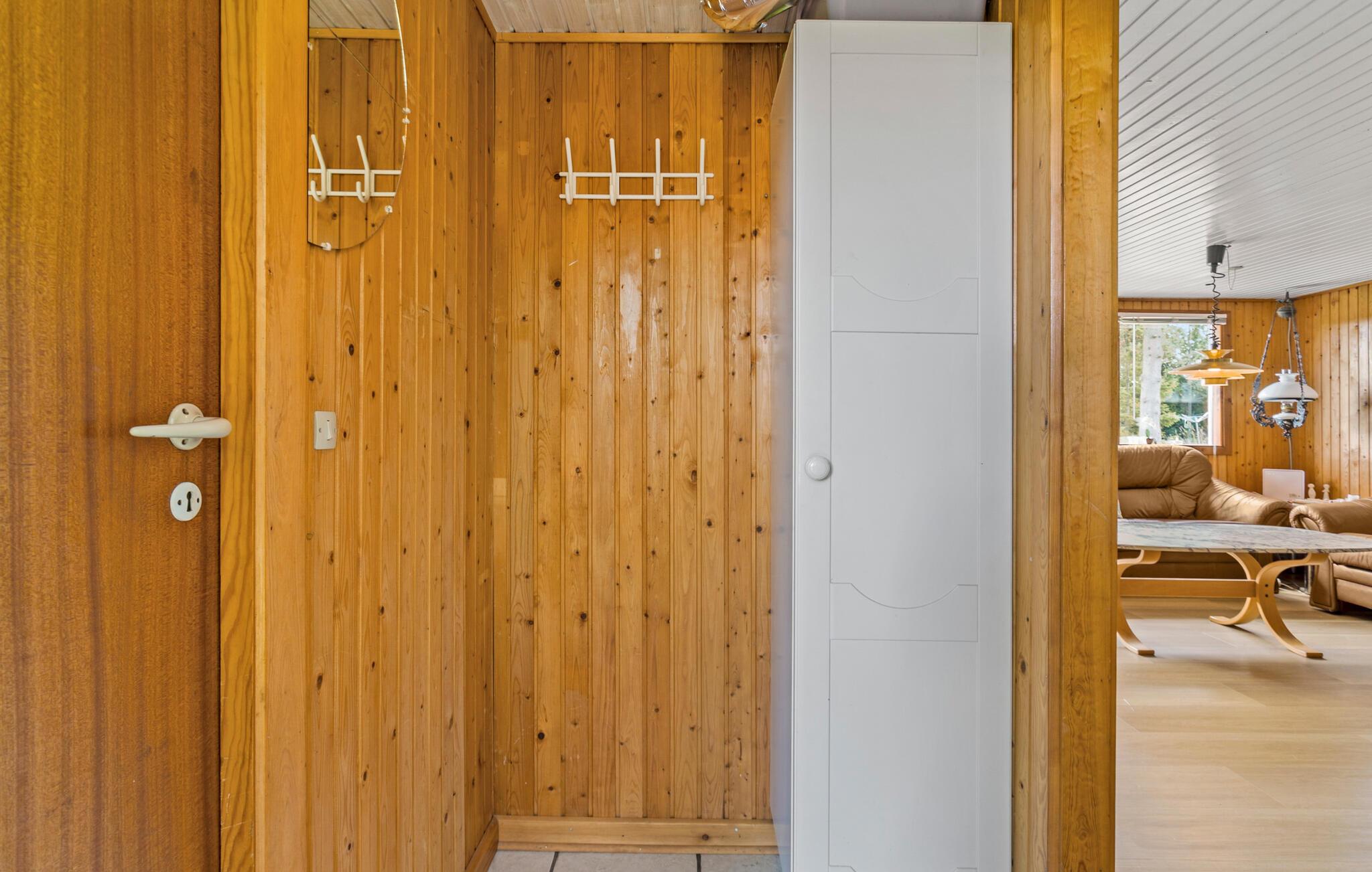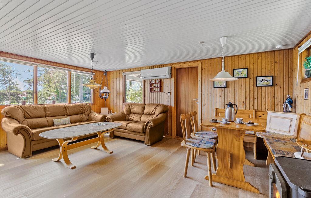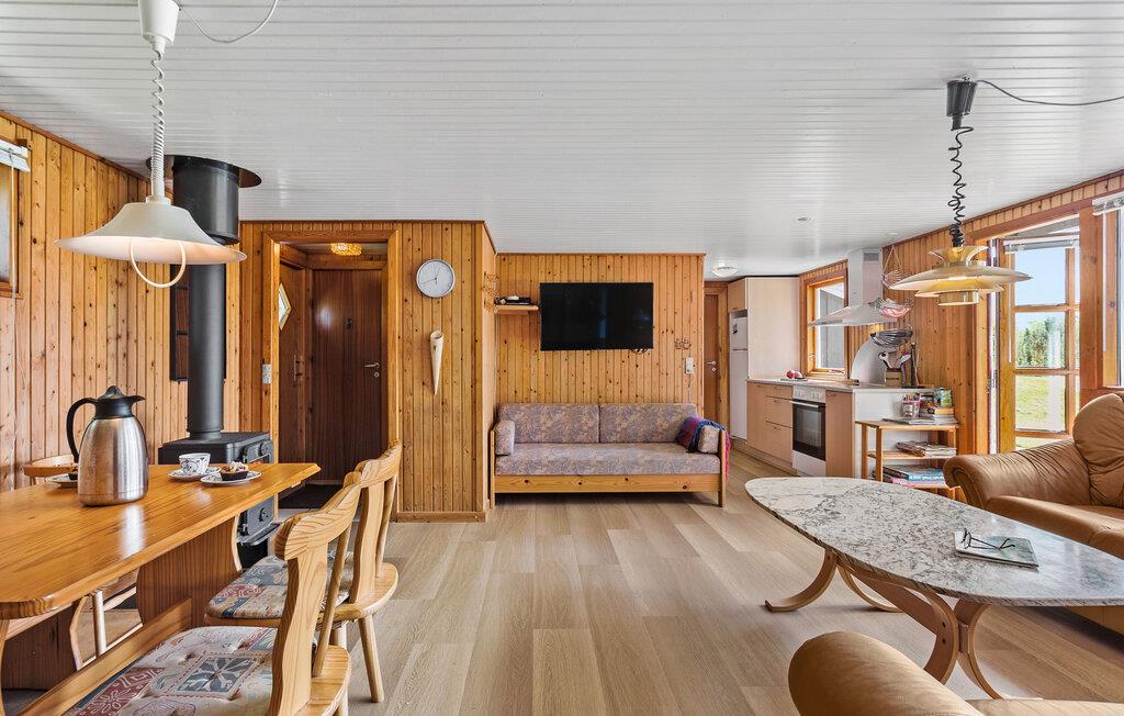 Hele familien kan se frem til en hyggelig ferie på den nordjyske østkyst! I Lyngså finder I nemlig dette skønne sommerhus, som emmer af varme og nostalgi med sine gyldne trævægge, brændeovnen og de klassiske indretningsløsninger. Der er en behagelig udsigt over den grønne have fra opholdsrummet, hvor I kan slappe af og sætte jer med en kop kaffe efter dagens udflugter.