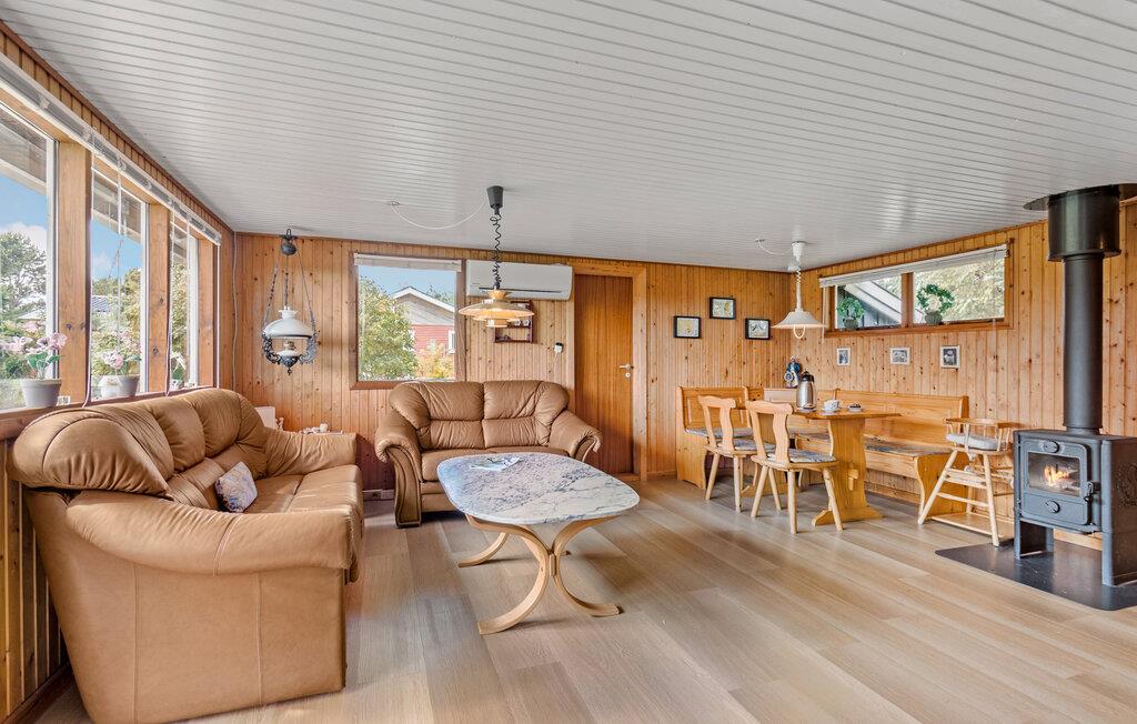 Hyggeligt sommerhus nær Lyngså Strand med brændeovn og stor have, perfekt til afslapning og familieferie i Nordjylland.