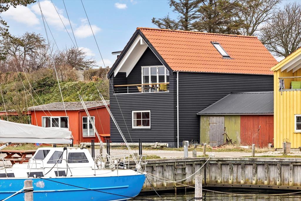 ”Fiskehytten” ligger på havnen i Maarup, hvor der engang lå et pakhus. Alt er dog helt nybygget fra 2015, og i dag er huset kun fyldt med masser af sommerhushygge og gode faciliteter til ferien på Samsø.