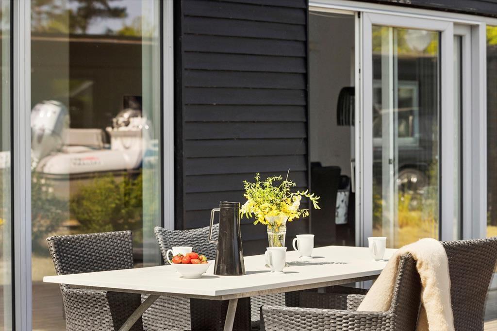 På den modsatvendte terrasse er der aftensol og læ, og her finder I også en grill, der med fordel kan benyttes til feriens måltider. Huset ligger på en åben grund i det rolige og smukke sommerhusområde, Mårup Østerstrand, så her er udsigten til omgivelserne bevaret, men I kan stadig nyde roen og ferien.