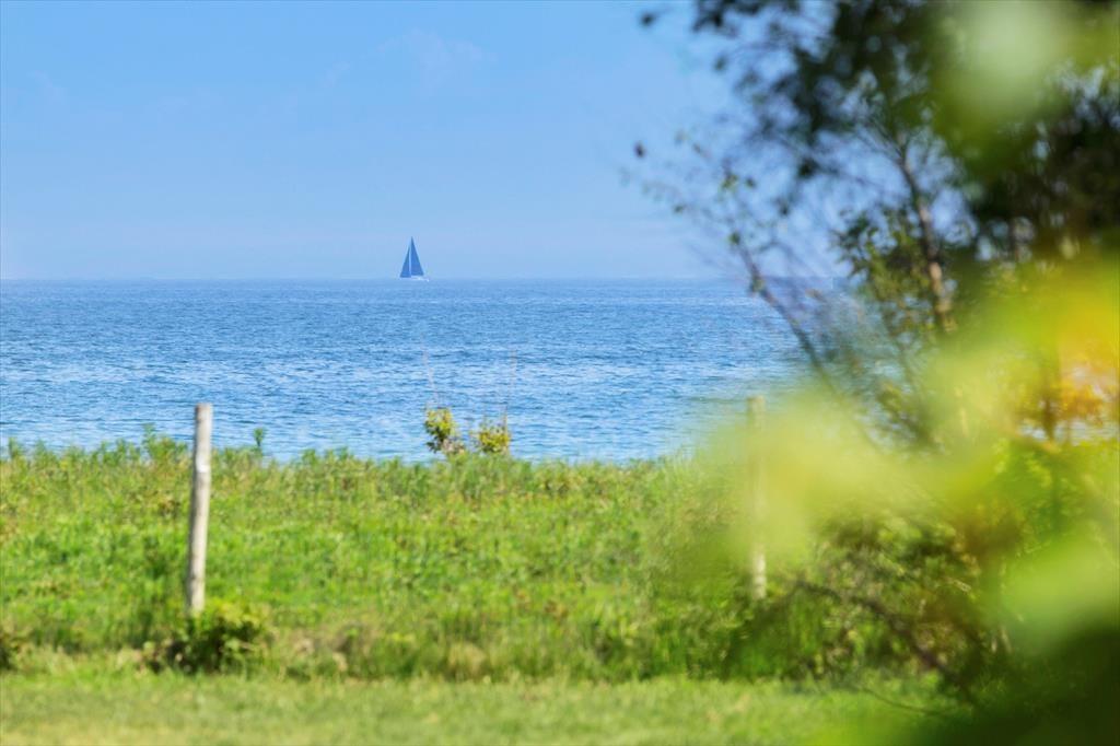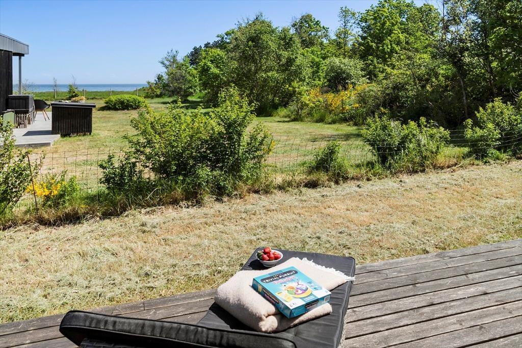 Foran ligger et andet sommerhus, men med den forskudte placering, er det fortsat muligt at nyde udsigten til havet. Huset har to store terrasser. Den ene terrasse er østvendt, og her kan I nyde udsigten til havet, mens I nyder jeres måltider eller morgenkaffen til en smuk solopgang. Her er også et par liggestole, så når vejret tillader det, kan I slappe helt af her.