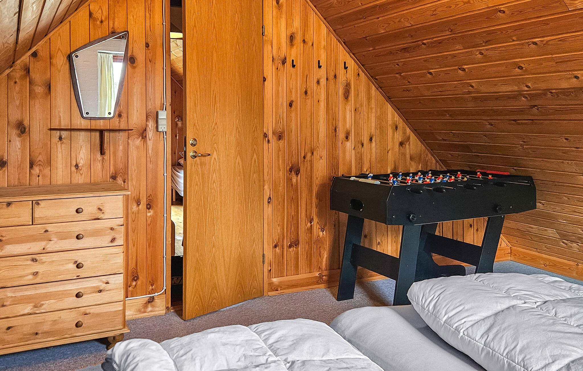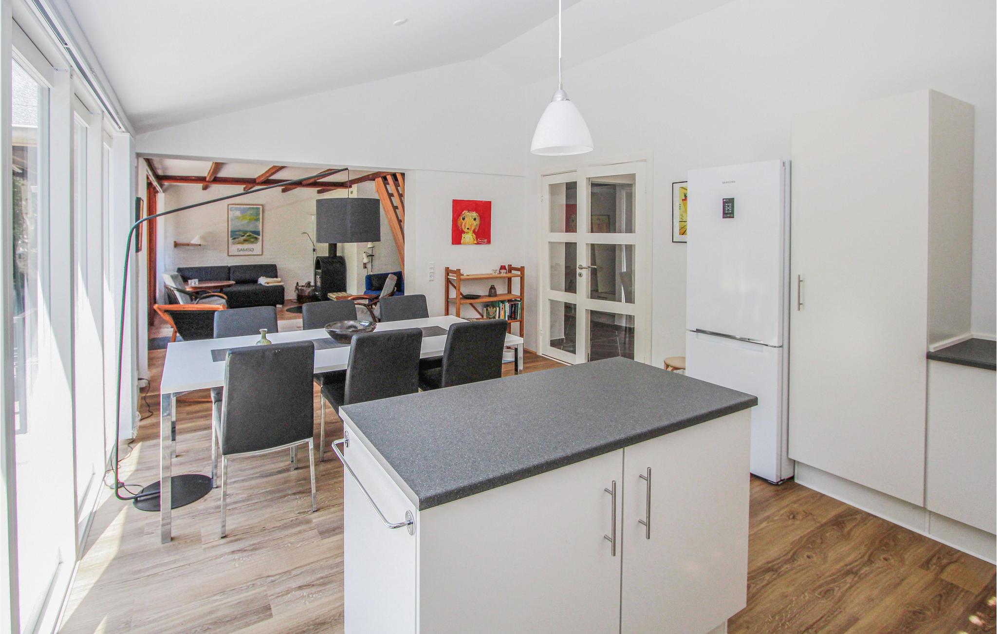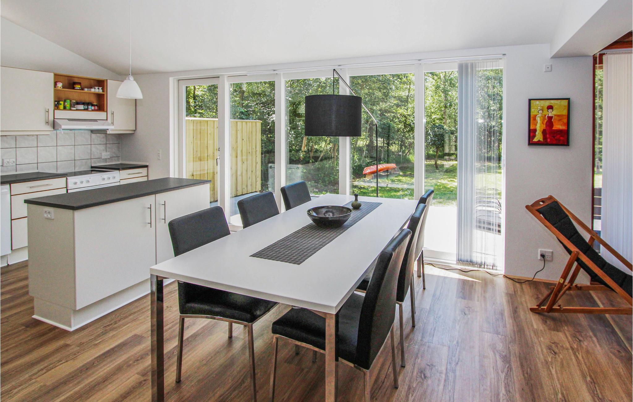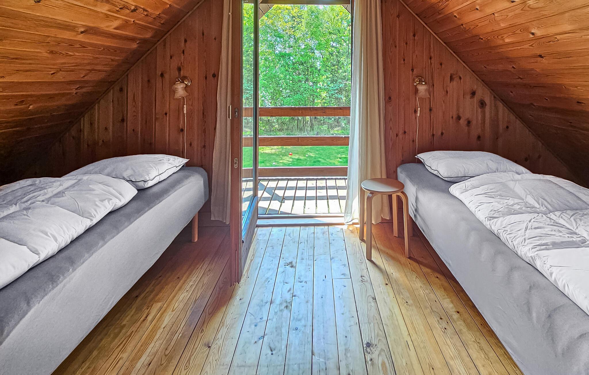 Malerisk omgivet af høje træer byder feriehuset jer velkommen kun få skridt fra en god badestrand. Indenfor venter jer lyse, stilfuldt indrettede værelser og fine elementer i træ, der giver huset en varm atmosfære. Her er der lagt op til ro og afslapning. Tag plads i de komfortable møbler i opholdsrummet, hvor I takket være de store vinduespartier kan nyde en dejlig udsigt over de grønne omgivelser og samtidig får et behageligt naturligt lys i stuerne. Glæd resten af selskabet med en lækker, hjemmelavet middag og underhold jer sammen til en spilleaften ved brændeovnen. Gå en tur ned til stranden, hvor I kan forfriske jer med en dukkert, slikke sol eller udforske området til fods.