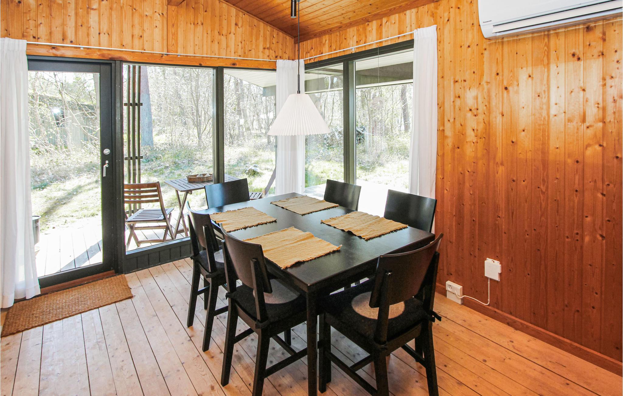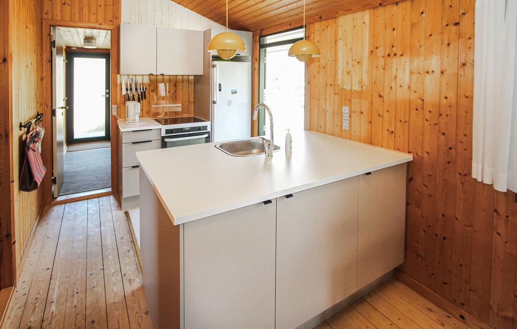 Hele familien vil finde plads under det maleriske græstag på huset, som ligger midt i skoven og tæt på havet. Den smagfulde indretning med mange træelementer giver huset en varm atmosfære og sikrer, at det passer godt ind i de naturlige omgivelser. Nyd den smukke udsigt over det grønne område fra spisebordet, som gør det nemt at sætte tempoet ned her.