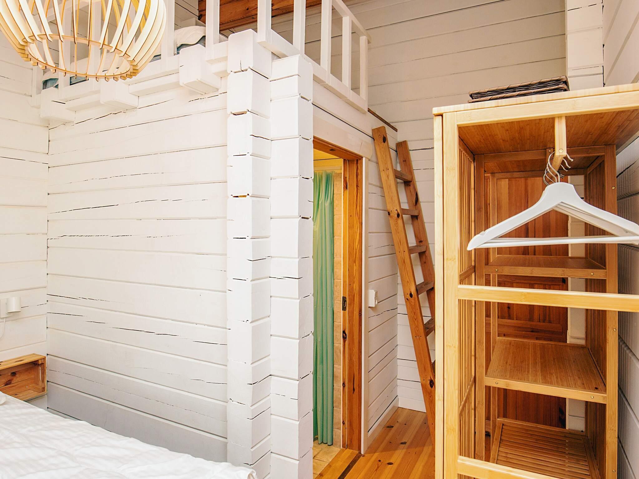 Charmerende og moderne feriehus - tæt på strand og aktiviteter Indendørs Velkommen til et lyst og indbydende sommerhus, bygget i træ med fokus på kvalitet og komfort. Huset har praktisk entré og gang, der fører til tre rummelige og smagfuldt indrettede soveværelser og to skønne badeværelser - hvoraf det ene har vaskemaskine og tørretumbler. Der er også adgang til en hyggelig hems med fire ekstra senge – et hit hos ungerne!