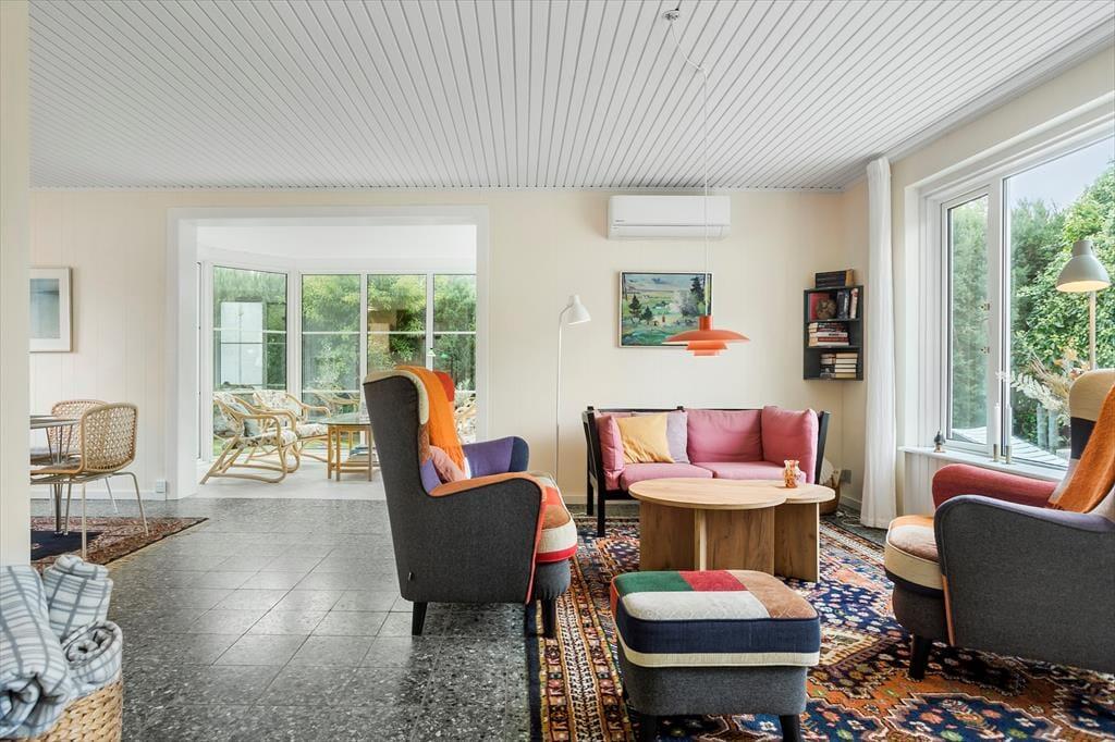 Fritidshuset indeholder: Entre, badeværelse med bruser, wc og vaskemaskine, 2 soveværelser med dobbeltsenge, køkken og en stor stue med spiseafdeling, sofaområde, samt en skøn udestue!