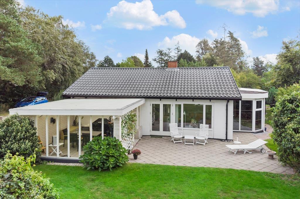 Beliggende på en skøn grund på 1002 kvm, med græsplæne og masser af flotte træer og buske. Derudover har fritidshuset 3 terrasser hvor den ene er delvist overdækket.