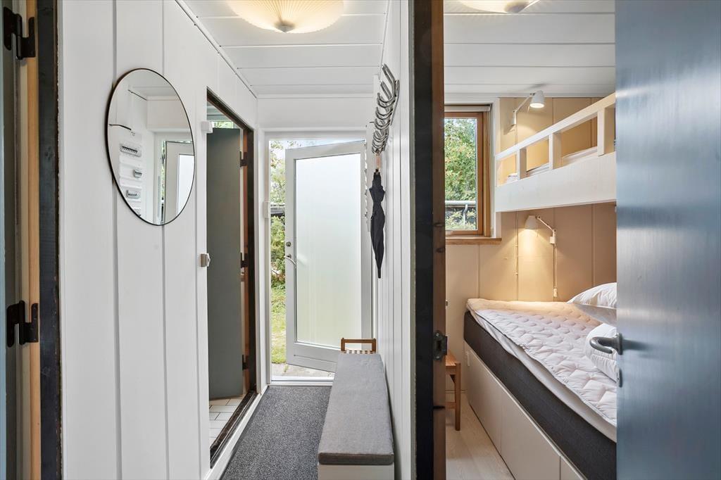 Huset har to soveværelser. Det ene soveværelse er indrettet med to komfortable elevationssenge (90x200 cm), garderobeskab, tv med Chromecast og opladerstik ved sengen. Det andet soveværelse har en køjeseng, hvor overkøjen måler 90x200 cm og underkøjen 120x200 cm.